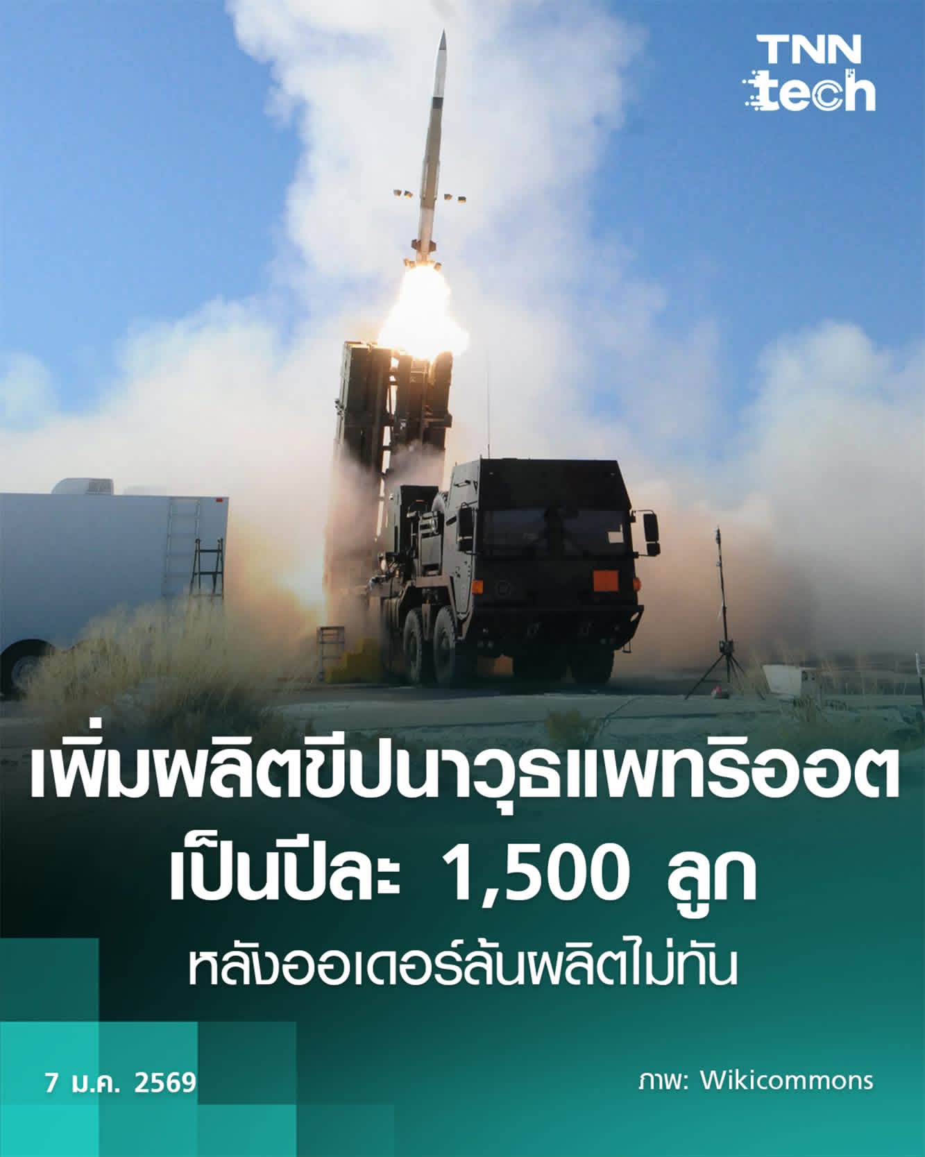 Lockheed Martin เตรียมผลิตขีปนาวุธในระบบ Patriot (แพทริออต) เพิ่ม 3 เท่า เป็นปีละ 1,500 ลูก หลังผลิตขายไม่ทัน