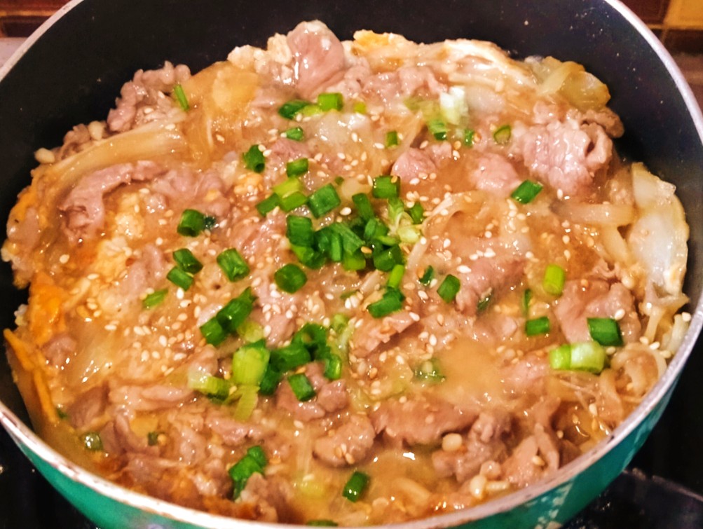 7. ไข่สุกพอดีแบบที่ชอบแล้ว โรยงาขาวคั่ว โรยต้นหอม ปิดแก๊ส พร้อมเสิร์ฟ