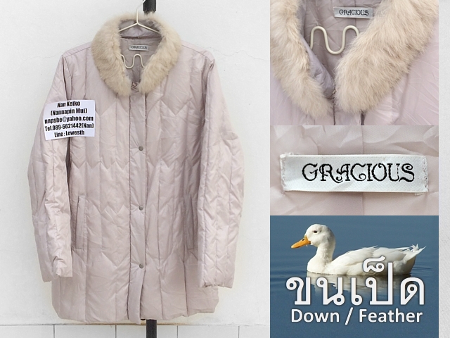 รหัสสินค้า LA1769 : (มือสอง) เสื้อกันหนาว Gracious Size LL อก44นิ้ว ยาว30นิ้ว แขนยาว24นิ้ว ไหล่16.5นิ้ว ขนเป็ด ถอดปกเฟอร์ออกได้ค่ะ ขาย 300บาทค่ะ (ฟรีค่าจัดส่งแบบลงทะเบียน)