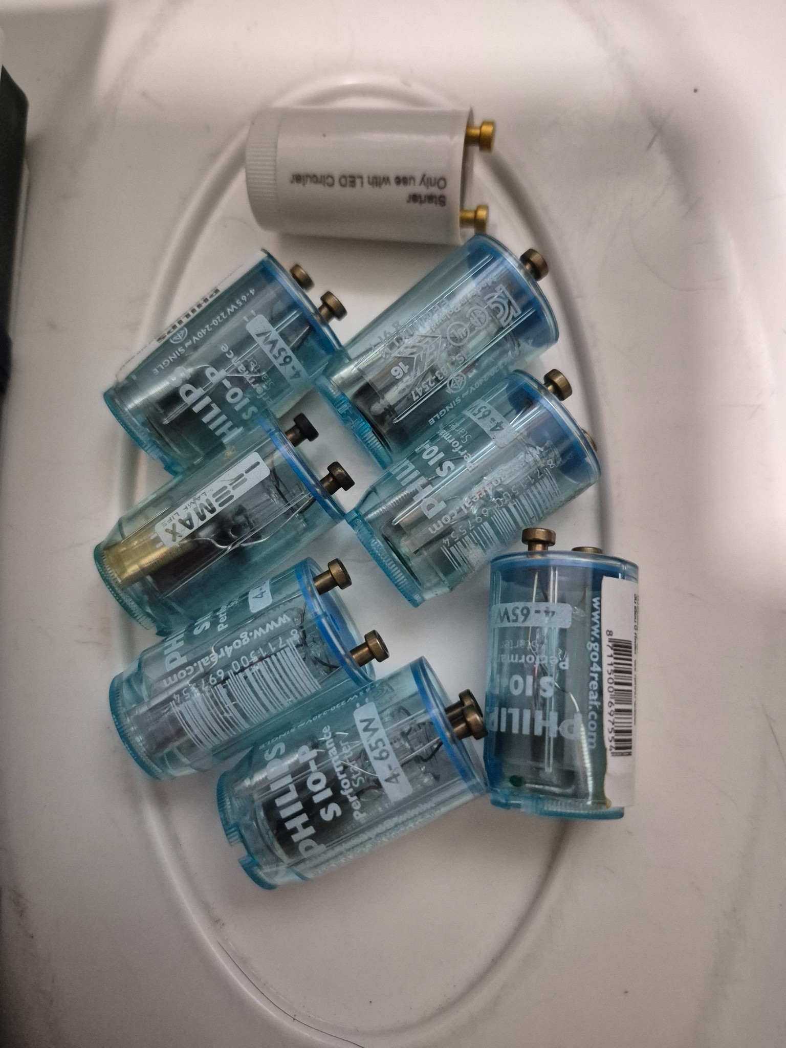 แท้จริงแล้วเขามี ไฟแบบใหม่คือหลอดไฟled ไม่ต้องใช้srarter แสนจะสะดวกสบาย มิหนำซ้ำ ชุดไฟฟลูออเรสเซนต์เก่า ยังถอดstarterออกแล้วใส่ไฟledแทนได้อีกด้วย 😅 ที่นี้จากที่มีstarterอยู่ไม่กี่อันเลยมีเพิ่มมาอีกหลายๆอัน จะเอาไปทำอะไรล่ะคะที่นี้ กลายเป็นwaste productsไปเลยไหมคะ🫣