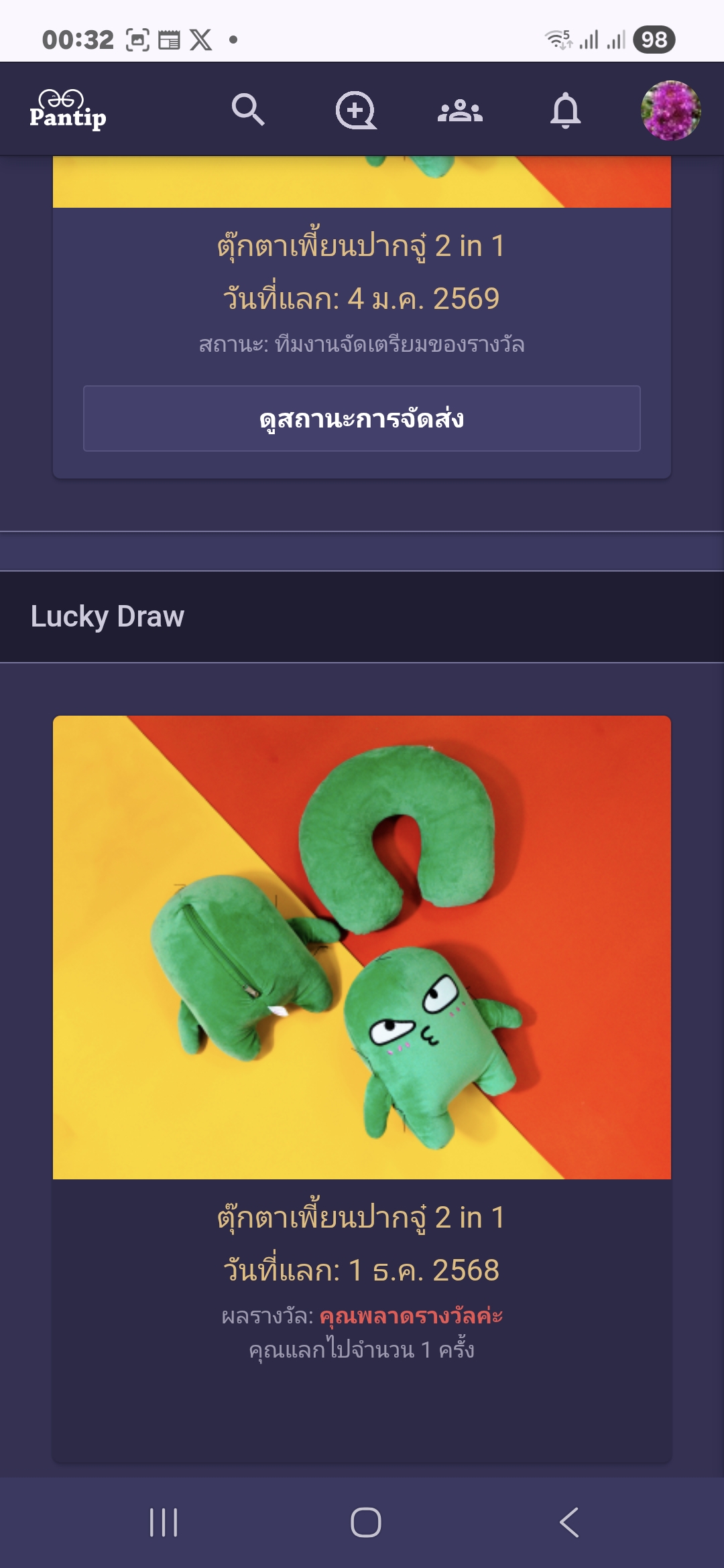 พอดีมีพอยต์จะหมดอายุอยู่ พอที่จะlucky draw น้องเพี้ยน ทูอินวันได้ 1สิทธิ์ ก็เลยใช้ไป(คงไม่ได้ เพราะไม่มีโชคทางนี้🤭)