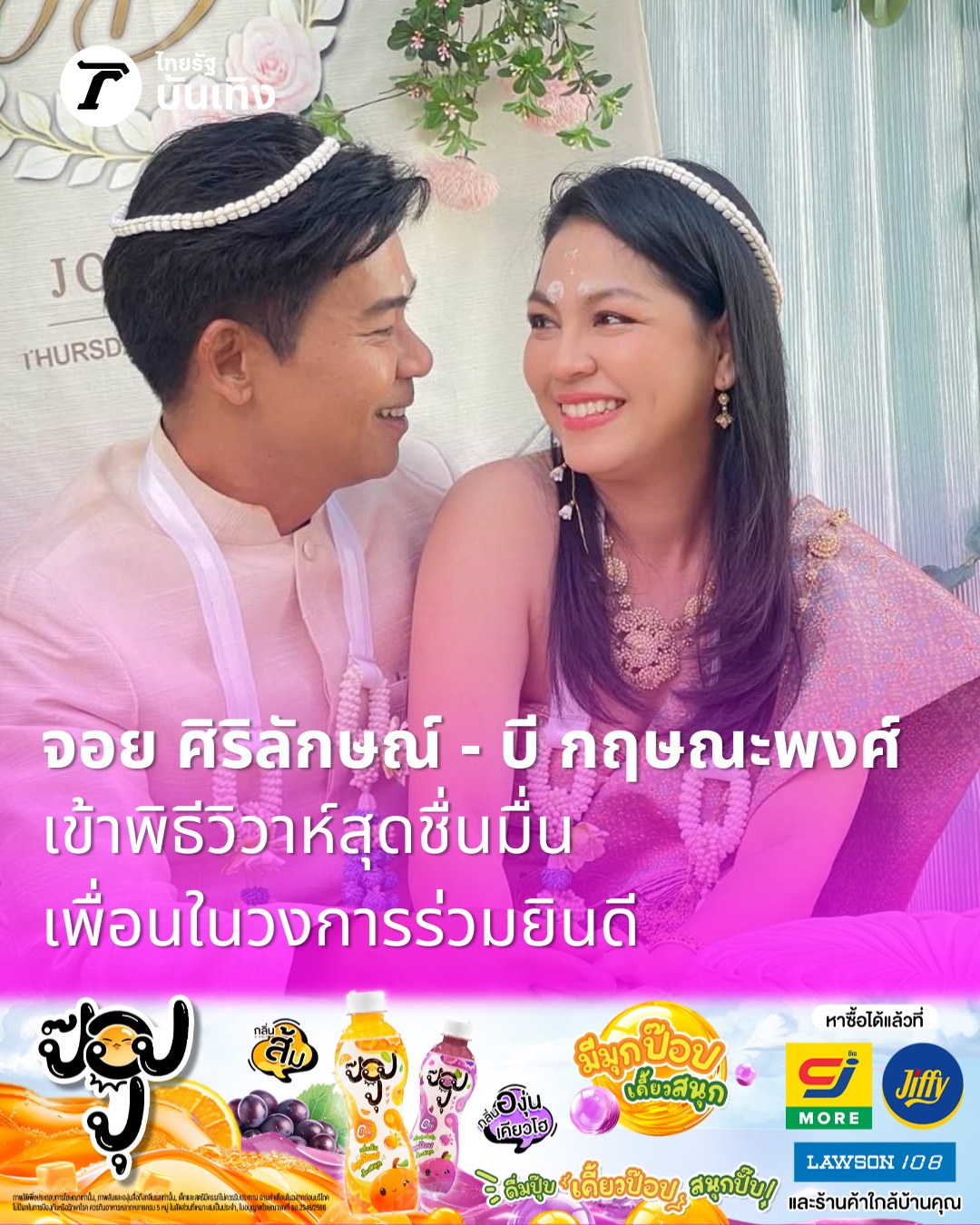ต้องขอแสดงความยินดีกับ จอย ศิริลักษณ์ ที่ได้เข้าพิธีวิวาห์สุดหวานกับแฟนหนุ่มนักดนตรี บี กฤษณะพงศ์