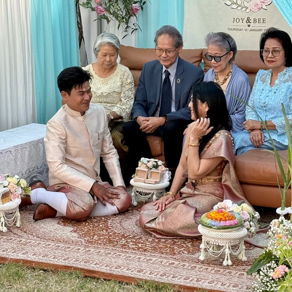 จอย ศิริลักษณ์ เข้าพิธีวิวาห์หวานชื่น บี กฤษณะพงศ์ หนุ่มนักดนตรี เพื่อนในวงการร่วมยินดี
