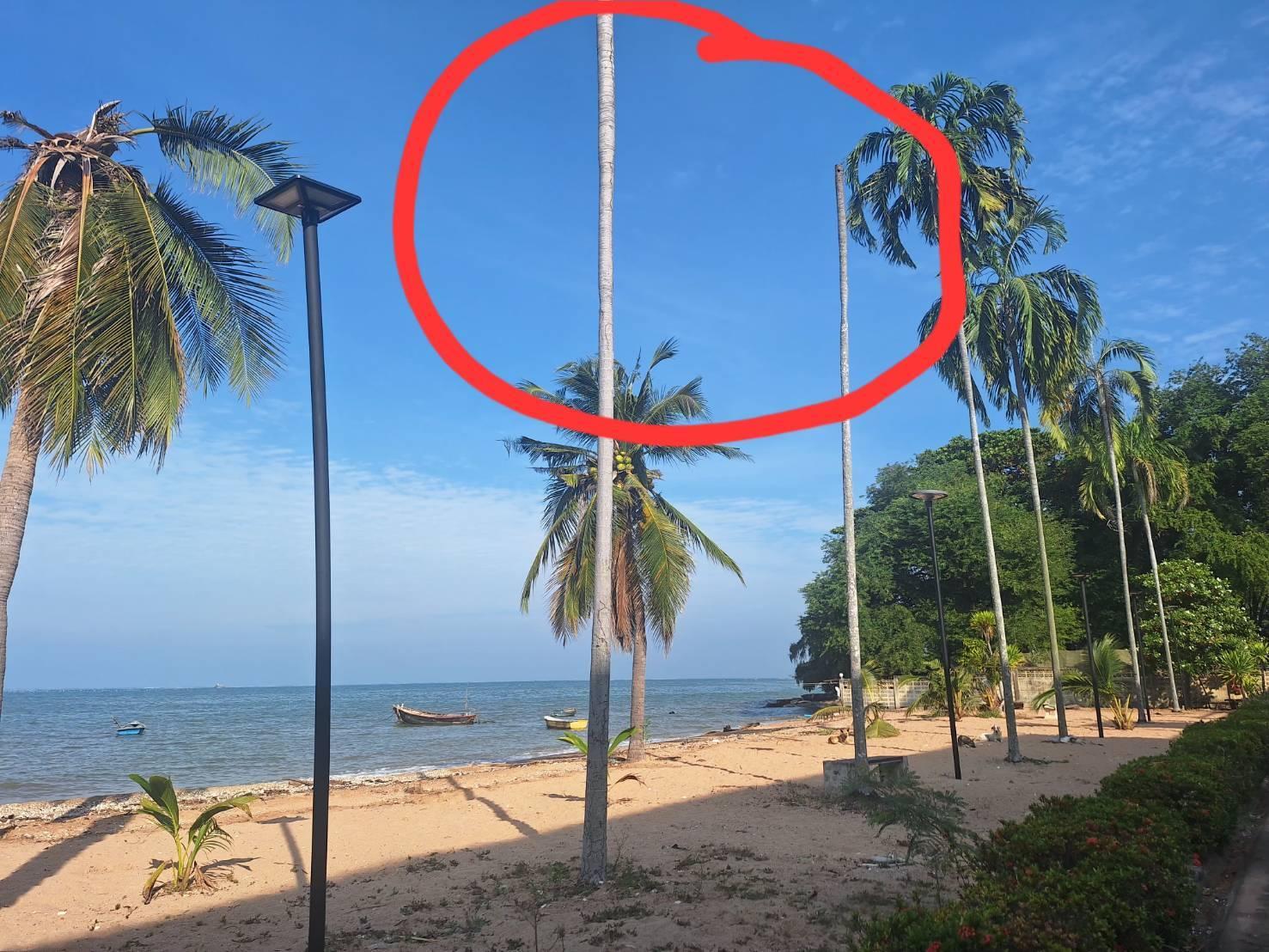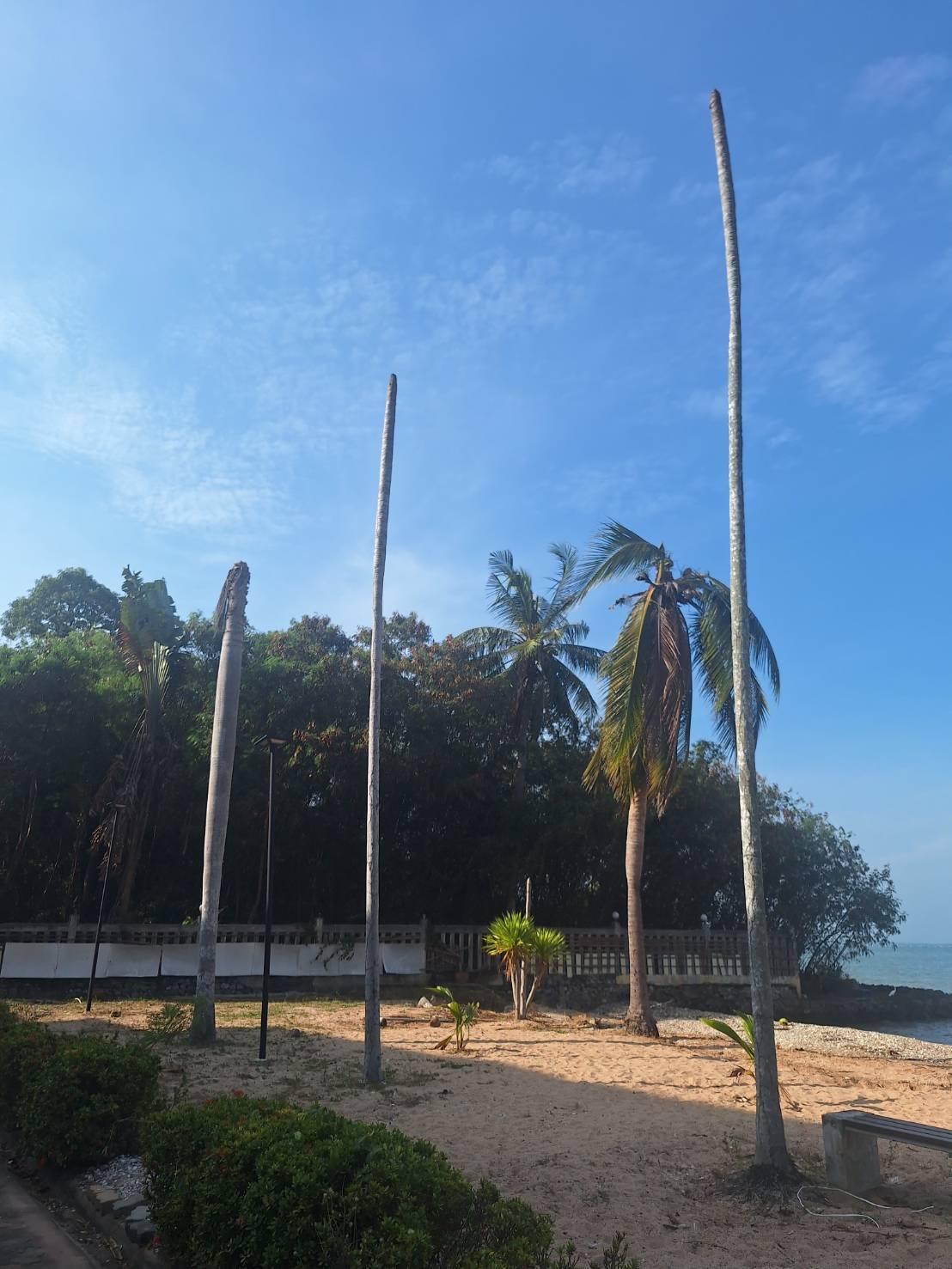 ต้นไม้ริมหาดจู่ๆ หัวด้วนแบบในรูป ถ้าไม่มีใครแอบไปทำอะไรมัน สันนิษฐานว่าโดนแมงกิน (ที่ผ่านมามะพร้าวตายไปหลายต้นเพราะเข้าใจว่าด้วงกิน แต่กับหมากหรือปาล์มเพิ่งเคยเจอที่นี่)