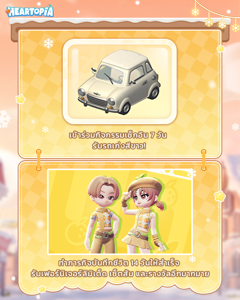 หลัง เกม Heartopia เปิดเซิร์ฟเวอร์ทั่วโลกบนทุกแพลทฟอร์มอย่างเป็นทางการในวันที่ 8 มกราคม 2026 ไม่ว่าจะเป็นบัตรงานแสดงจำนวน 180 ใบ , คริสตัลแสงจันทร์กว่า 1,300 ชิ้น และเมื่อเช็คอินครบ 7 วันรับไปเลย รถเก๋งสีขาว เฟอร์นิเจอร์และคอสตูมฟรี พร้อมรางวัลอื่นๆ อีกมากมาย ! เริ่มด้วย