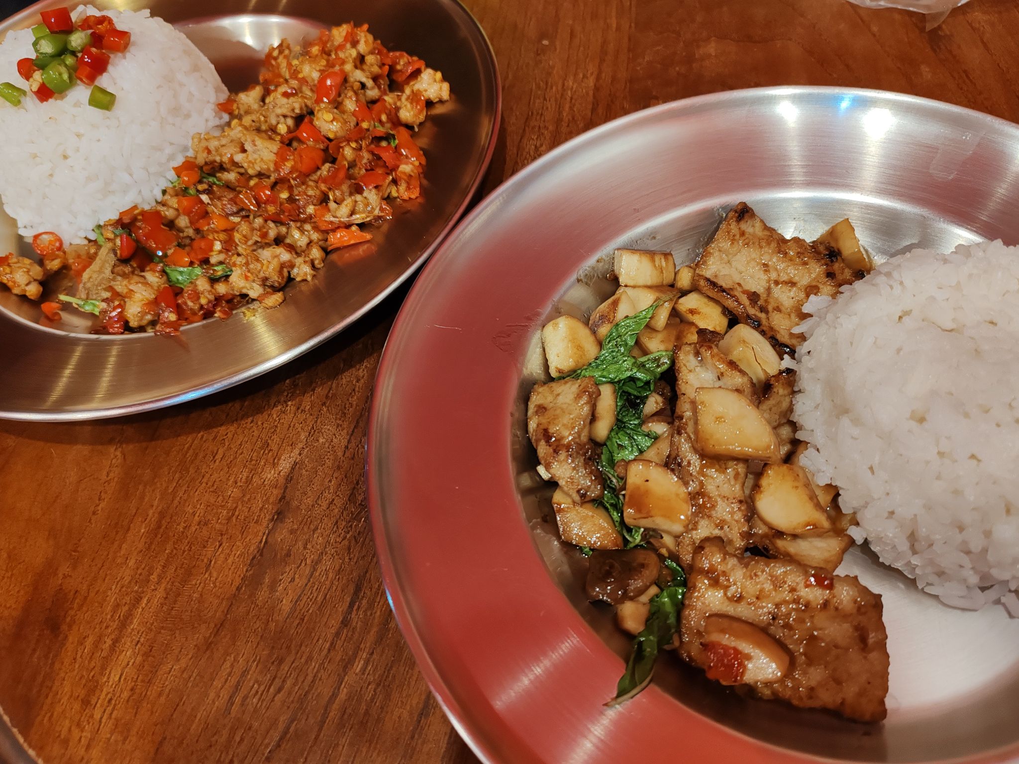 มาแล้ว 2 จาน กะเพรา1 เผ็ด 150% กะเพราเห็ดออรินจิ 1 เผ็ด 5%