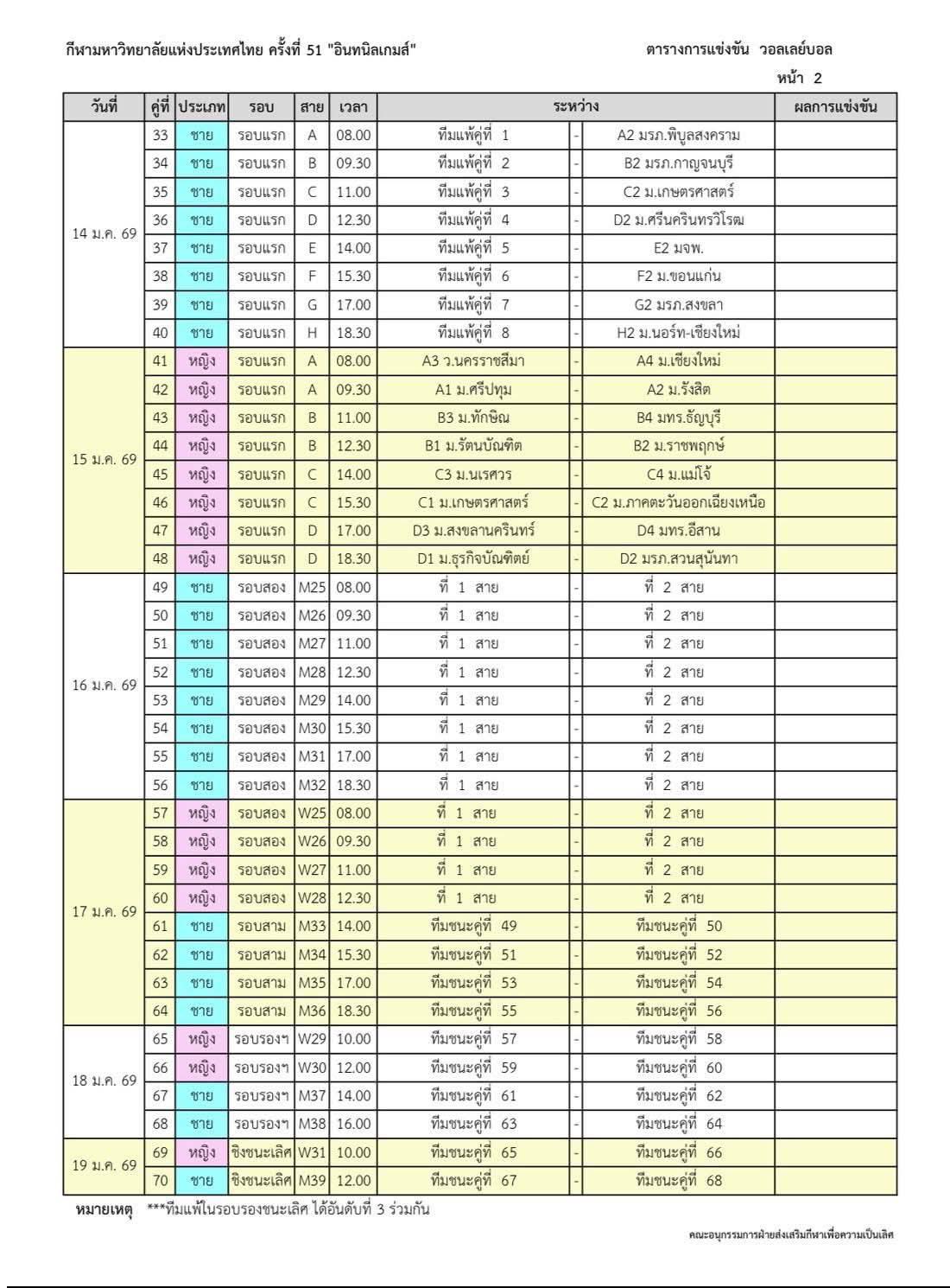 ตารางแข่งกีฬามหาวิทยาลัย