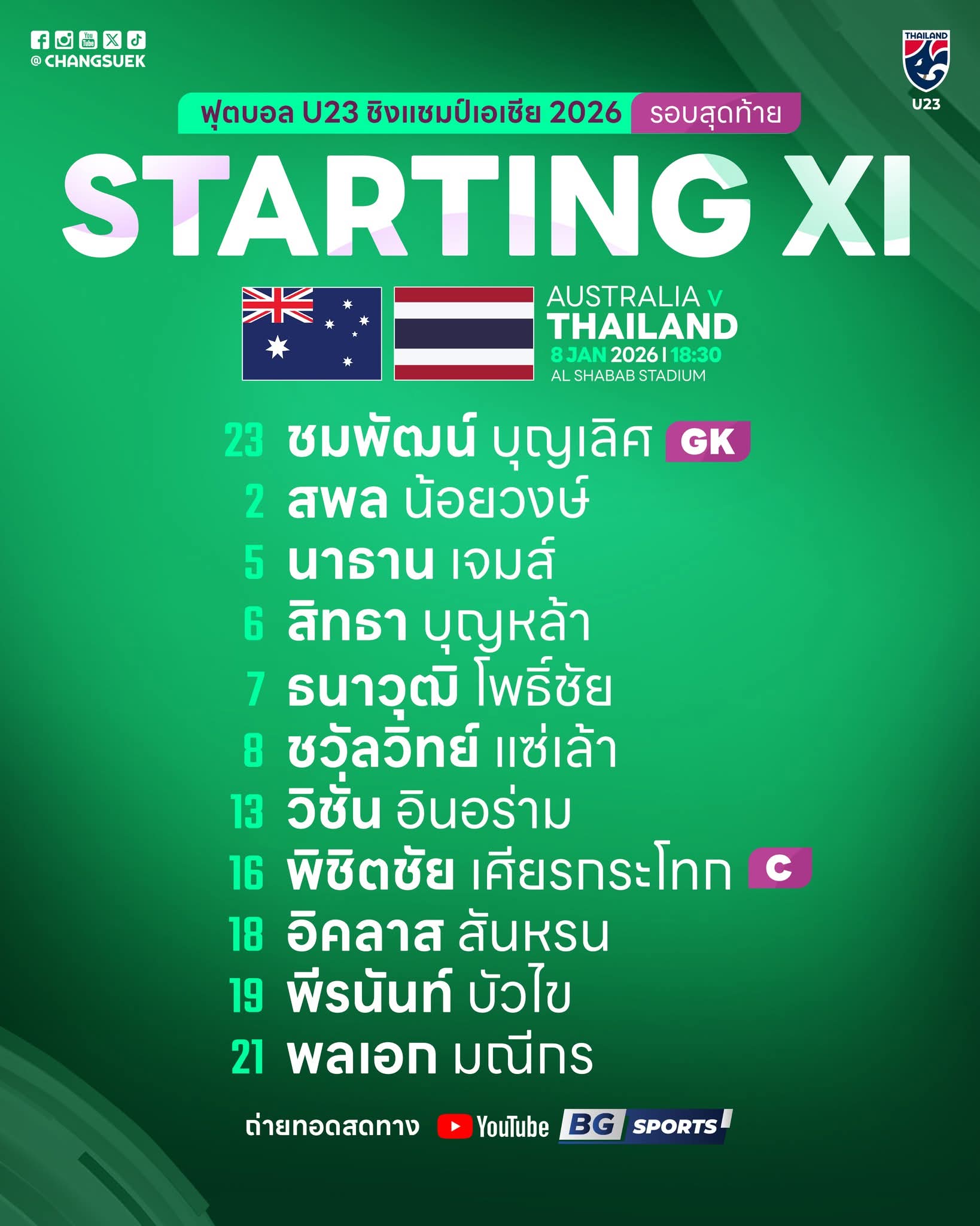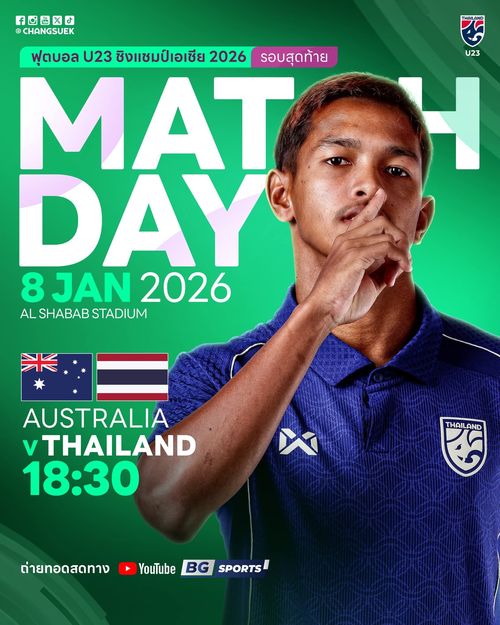 🔴⚽ ฟุตบอลชิงแชมป์เอเชีย รุ่นอายุไม่เกิน 23 ปี 2026 รอบแบ่งกลุ่ม กลุ่ม ดี เกมแรก | 🇦🇺 ออสเตรเลีย พบ ไทย 🇹🇭