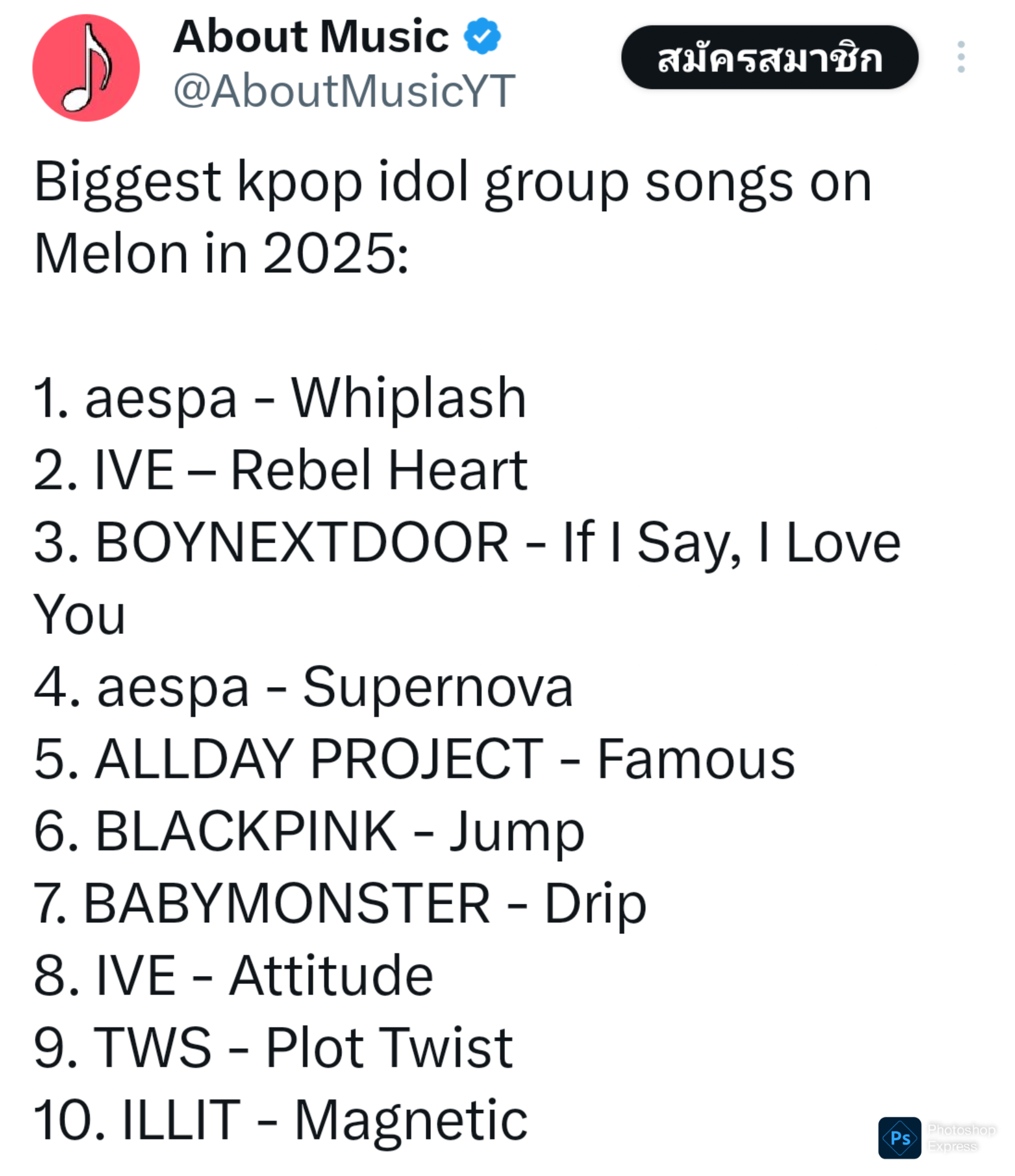 เพลง DRIP ของ BABYMONSTER เป็นเพลงที่ยิ่งใหญ่ที่สุดอันดับ 7 บน Melon ประจำปี 2025 เป็นอันดับ 1 ของเคป๊อปเกิร์ลกรุ๊ปเจน 5