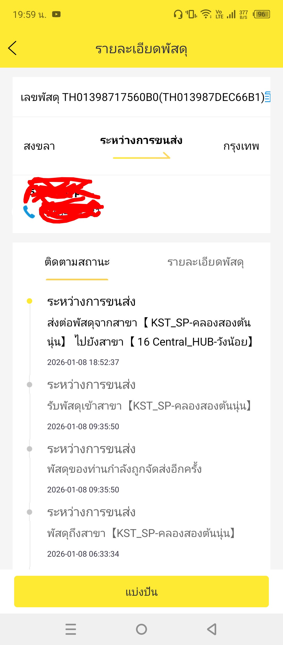 คือส่งรอฃเท้าให้หลาน แล้วเข้าใจว่าเราไปส่งวันที่ 4 ช่วง 19:04 น. อะเราเข้าใจว่า มันจะมีคนมารับแบบไป ศูนย์กระจายสิ้นค้าประมาณวันที่ 5 แล้วสินค้าจะแบบไปสู่ปลายทางวันที่ 6 แต่ของขึ้นกำลังอส่งส่งจากบางบัว