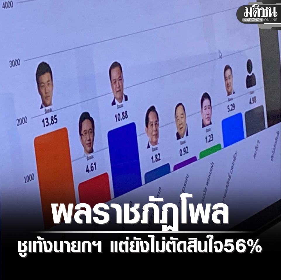 ม.ราชภัฏ 38 แห่งทั่วประเทศ ทำโพลก่อนรับสมัคร ส.ส. กลุ่มเป้าหมายประชาชนทั่วไป 11,900 คน เลือก “เท้ง” เป็นนายกฯ แต่ยังไม่ตัดสินใจมีมากกว่า