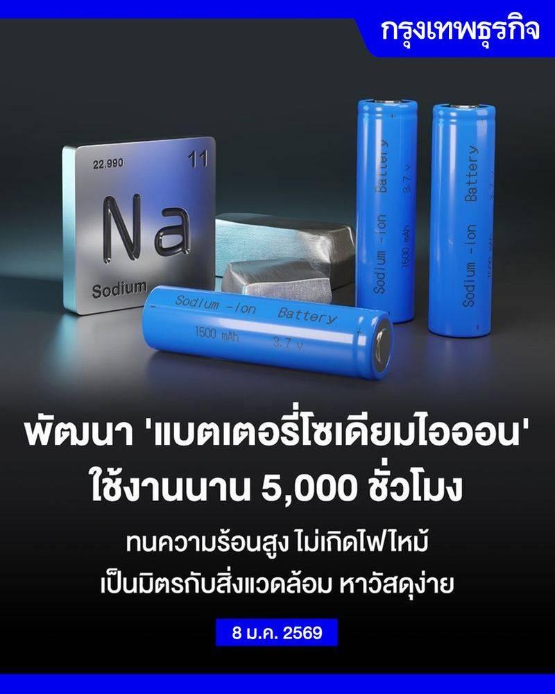 🔋 แบตเตอรี่โซเดียมไอออนชนิดใหม่ อายุการใช้งาน 5,000 ชั่วโมง
