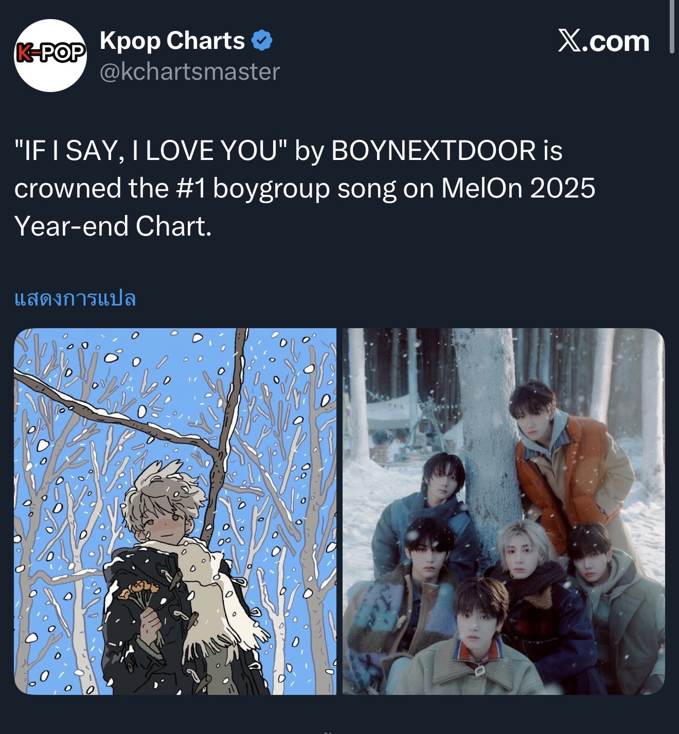 เพลง “If I Say, I Love You” ของ BOYNEXTDOOR สามารถคว้า อันดับ 1 สูงสุด บน MelOn 2025 Year-end Chart ในหมวด Boy Group และ ศิลปินเจเนอเรชันที่ 5 ด้วยลำดับที่ 12 บนชาร์ตประจำปี 🎉🎉🎉