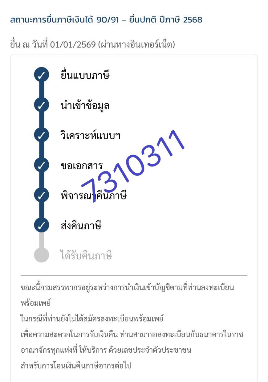 ปีนี้โชคดีมากสรรพากรส่งคืนภาษีแบบไม่โดนสุ่มมา 4 ปีติด ตอนนี้รอรับเงินคืนภาษีค่ะ