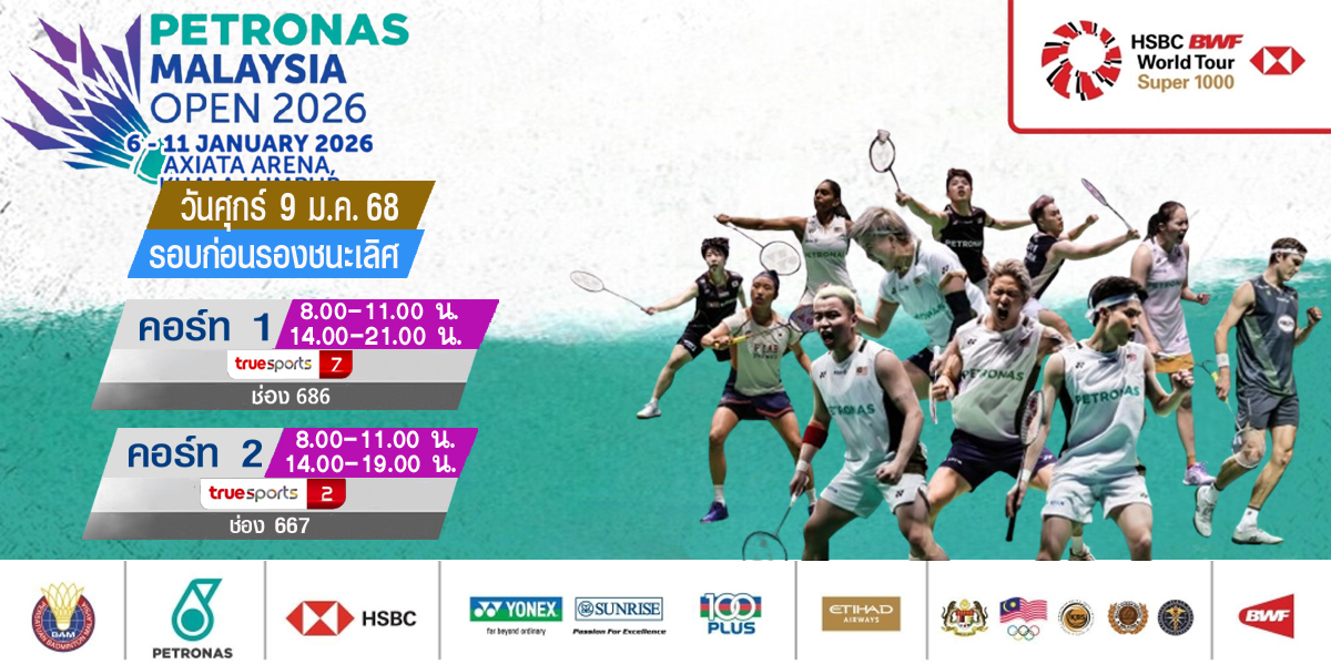 เชียร์สด ! แบดมินตัน PETRONAS Malaysia Open 2026 : รอบก่อนรองชนะเลิศ (9 ม.ค. 69) (คู่แรก 8.00 น.)