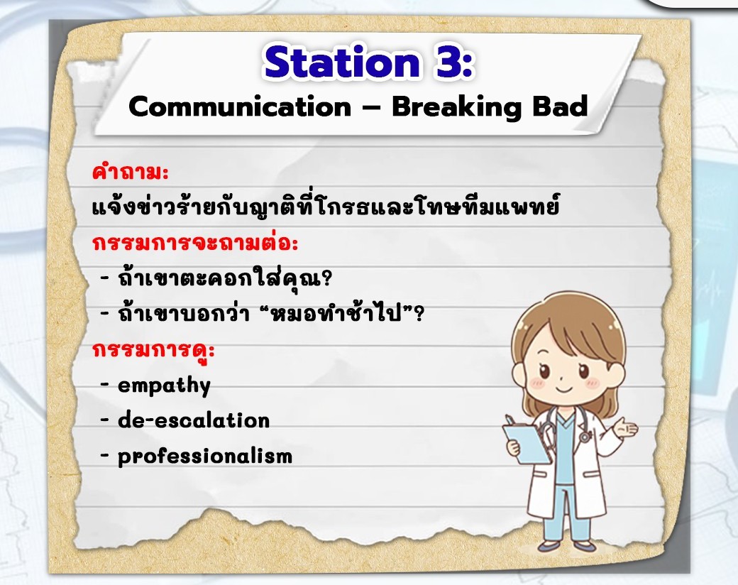 3.ฝึกทักษะการสื่อสาร เช่น Breaking Bad News และการทำงานภายใต้ลำดับขั้นในโรงพยาบาล