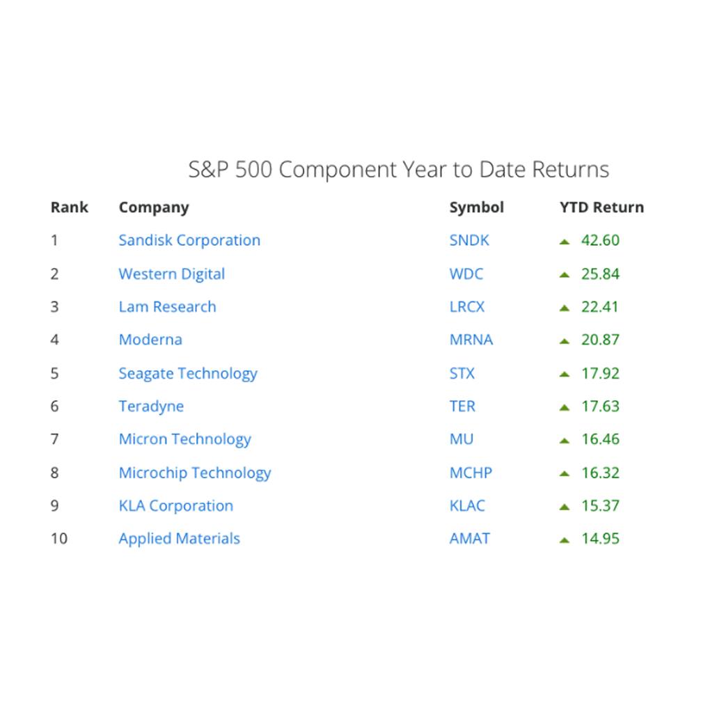 เปิดปีมา Sandisk ก็จัดผลตอบแทน 42.60% ไปแล้ว และนี่คือ 10 หุ้นใน S&P500 ที่ทำผลตอบแทนได้ดีที่สุดในปีนี้ 😲
