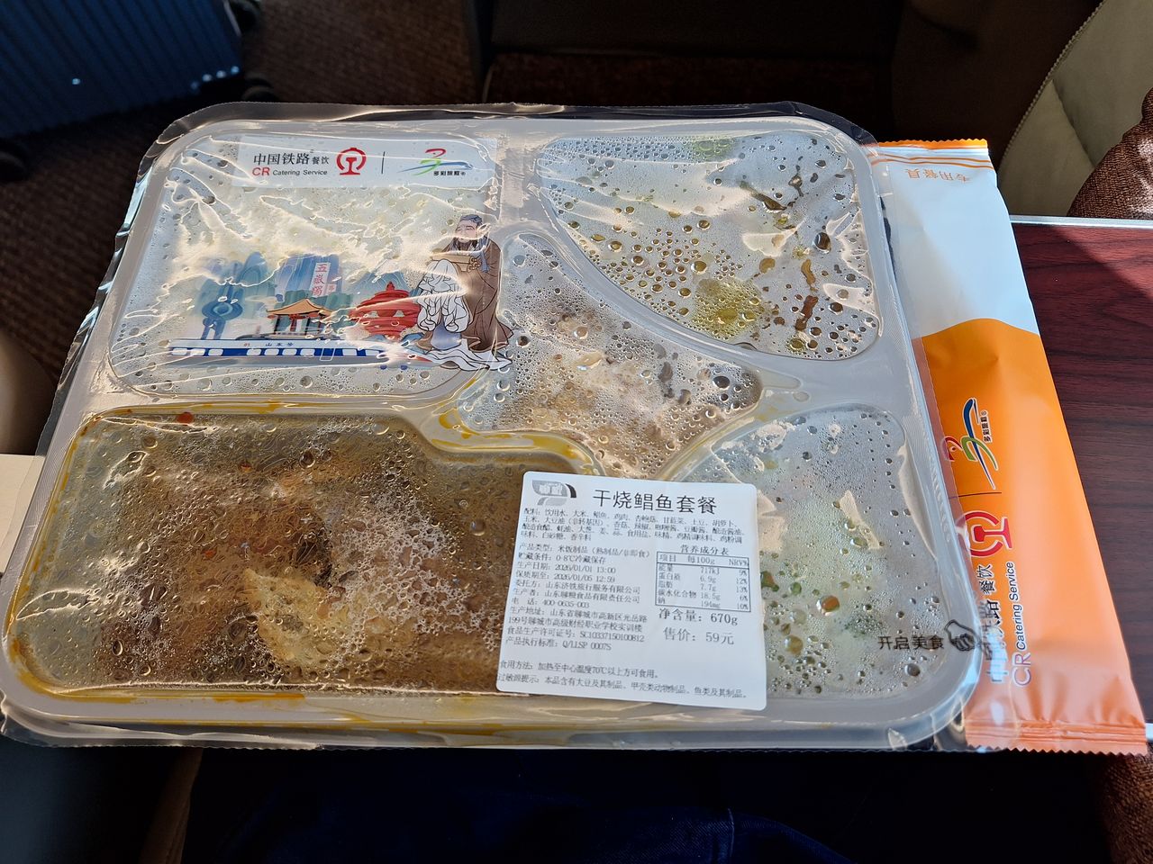 ด้วยเป็นช่วงเที่ยงเลยสอบถามอาหารที่จำหน่ายบนรถ (ปกติมีอาหารจำหน่าย) และแจ้งว่าคณะไม่ทานเนื้อวัว ... พนักงานประจำตู้ ก็ช่วยประสานกับพนักงานที่ดูแลเรื่องอาหาร และมาแนะนำเมนูที่ไม่มีเนื้อวัวถึงที่นั่ง พร้อมทั้งสั่งเป็นพิเศษให้ ... ถือว่าดูแลเป็นอย่างดีก็ว่าได้ ...