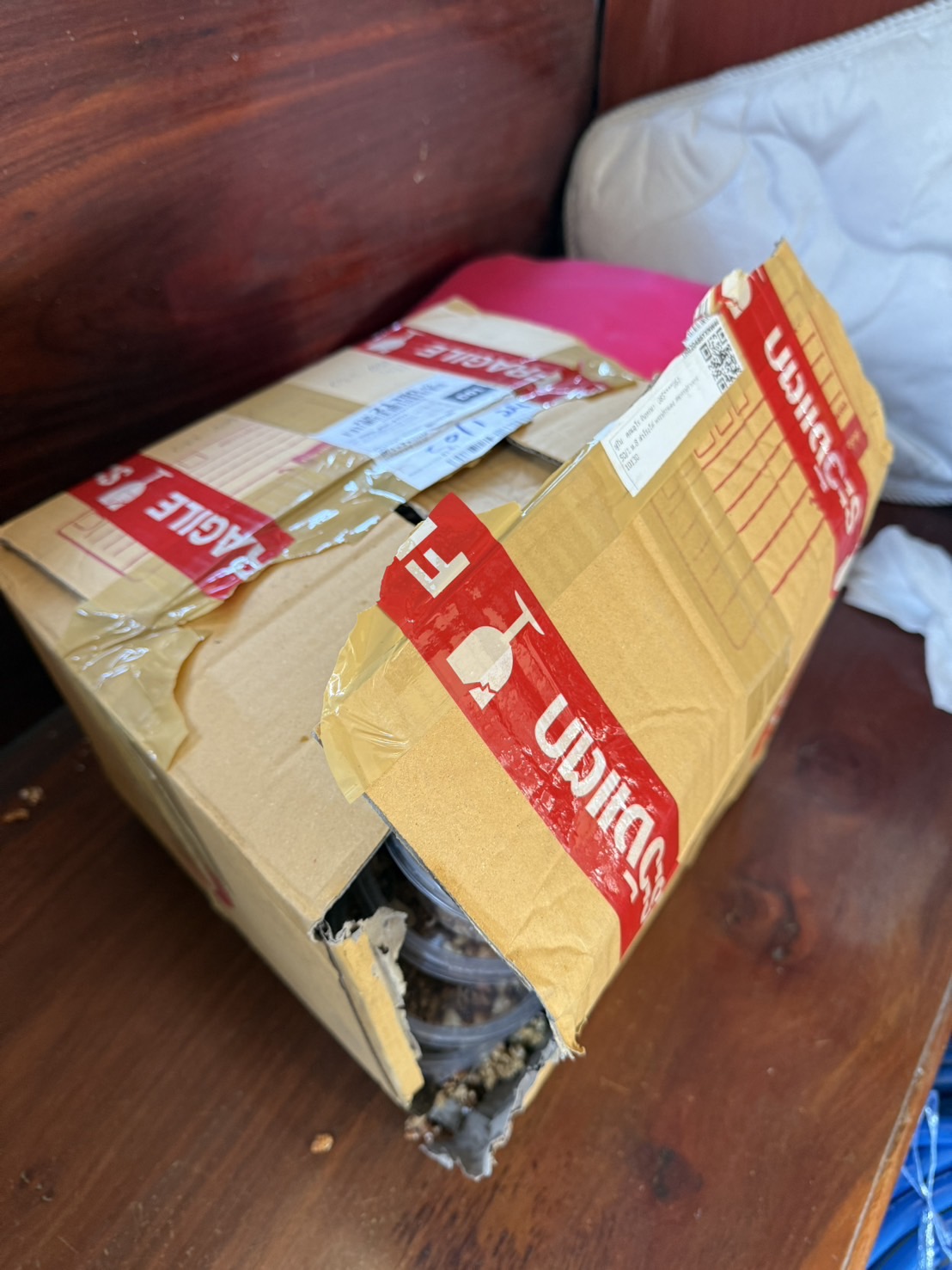 พัสดุถึงลูกค้าแตกหมด ขนส่งไม่รับผิดชอบ ทั้งที่มีห่อ “ระวังแตก