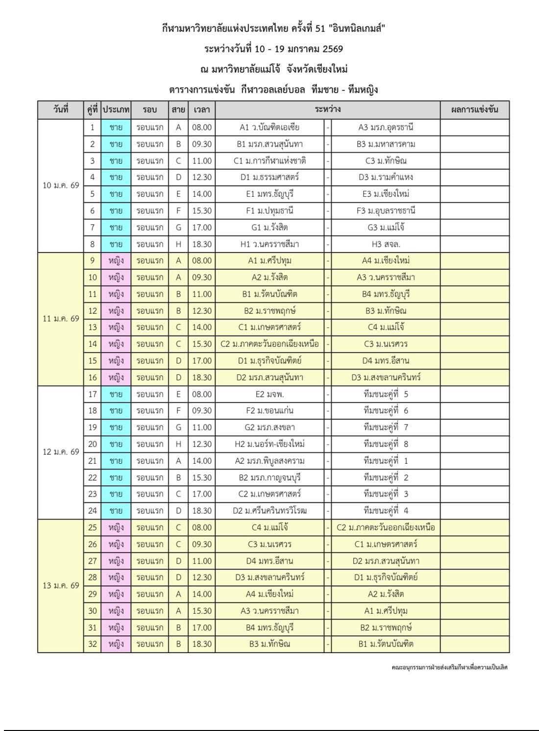 วอลเลย์บอลกีฬามหาวิทยาลัย แข่งพรุ่งนี้