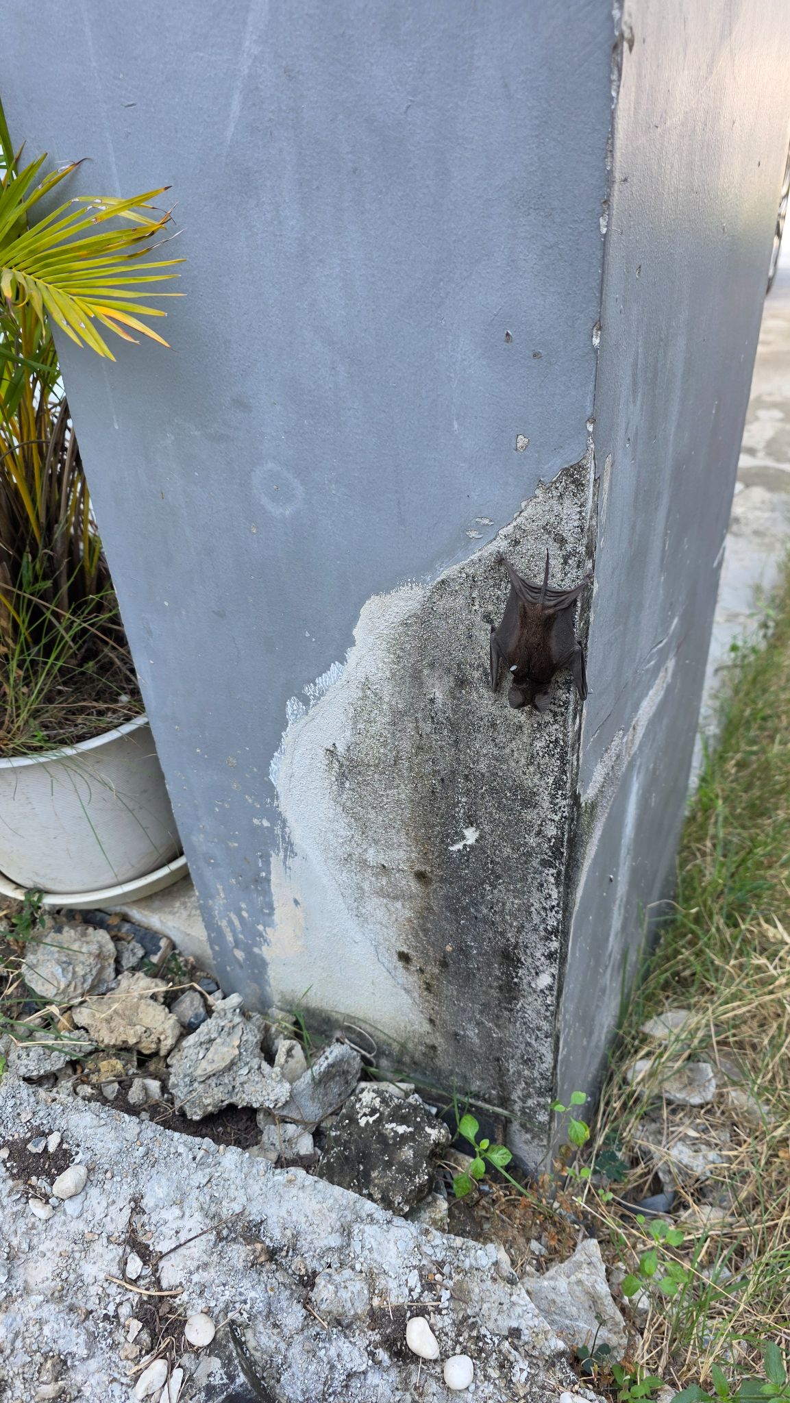 เจอค้างคาวตัวนี้ นอนอยู่บนพื้นหน้าบ้าน ตอน 3 ทุ่ม เอาไม้เขี่ยๆ มันก็คลานๆๆๆ ไปเรื่อยๆ แล้วก็นอนนิ่งบนพื้นคอนกรีต