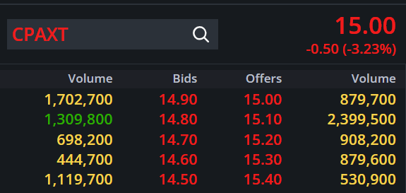 ทุบเสร็จค่อยลากกลับ CPAXT บวก 5.36% มาอยู่ที่ 29.50 บาท เพิ่มขึ้น 1.50 บาท มูลค่าซื้อขาย 241.90 ล้านบาท เมื่อเวลา 10.29 น. โ
