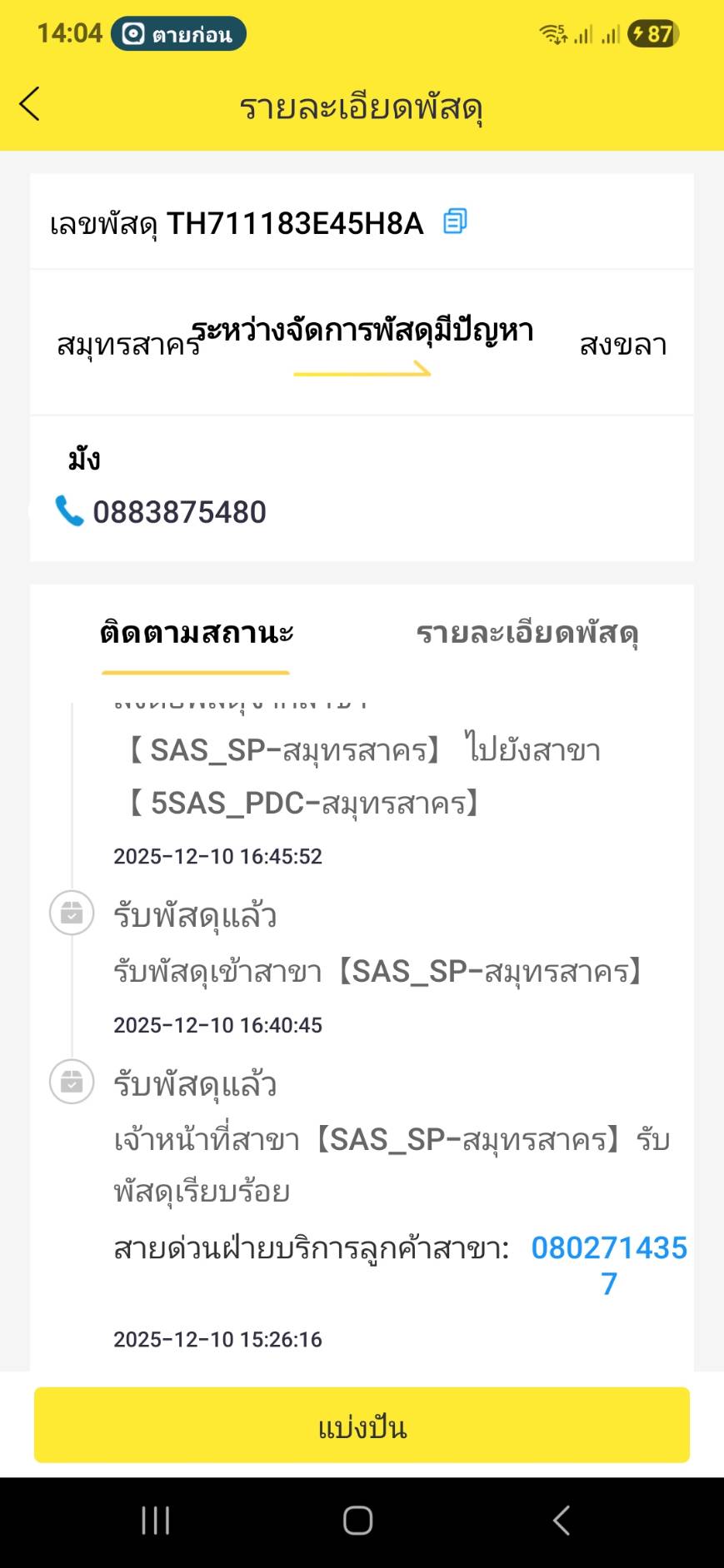 ติดตามพัสดุแฟลชนี่ยากเย็นมากมาย สถานะไม่อัปเดตให้ด้วย