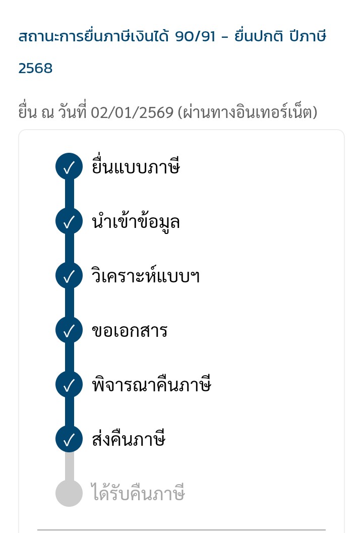 เห็นมีหลายๆท่านบอกว่าได้คืนภาษีแล้วผมเลยไปดูมั่งครับปรากกว่าขั้นตอนมันขยับพรวดเลยครับ