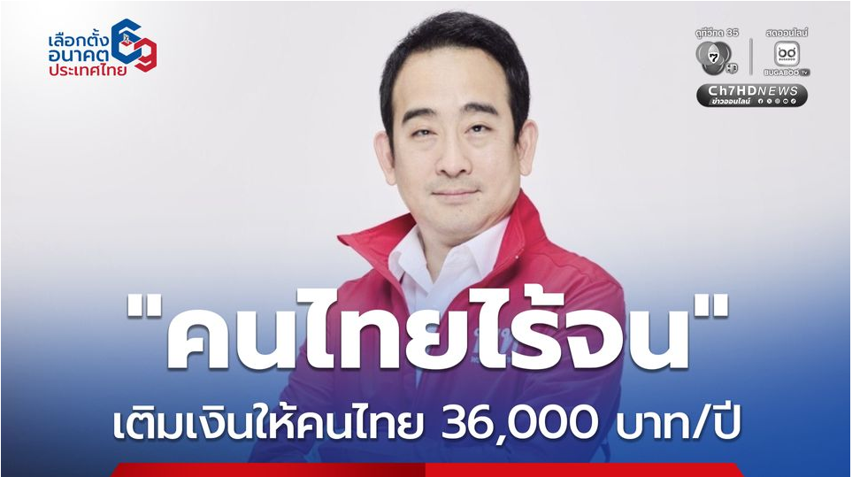 ข่าวดี้ดี 4.0 เพื่อไทย ชูนโยบาย คนไทยไร้จน เติมเงินคนไทยให้พ้น เส้นความยากจน สูงสุด 36,000 บาท/ปี