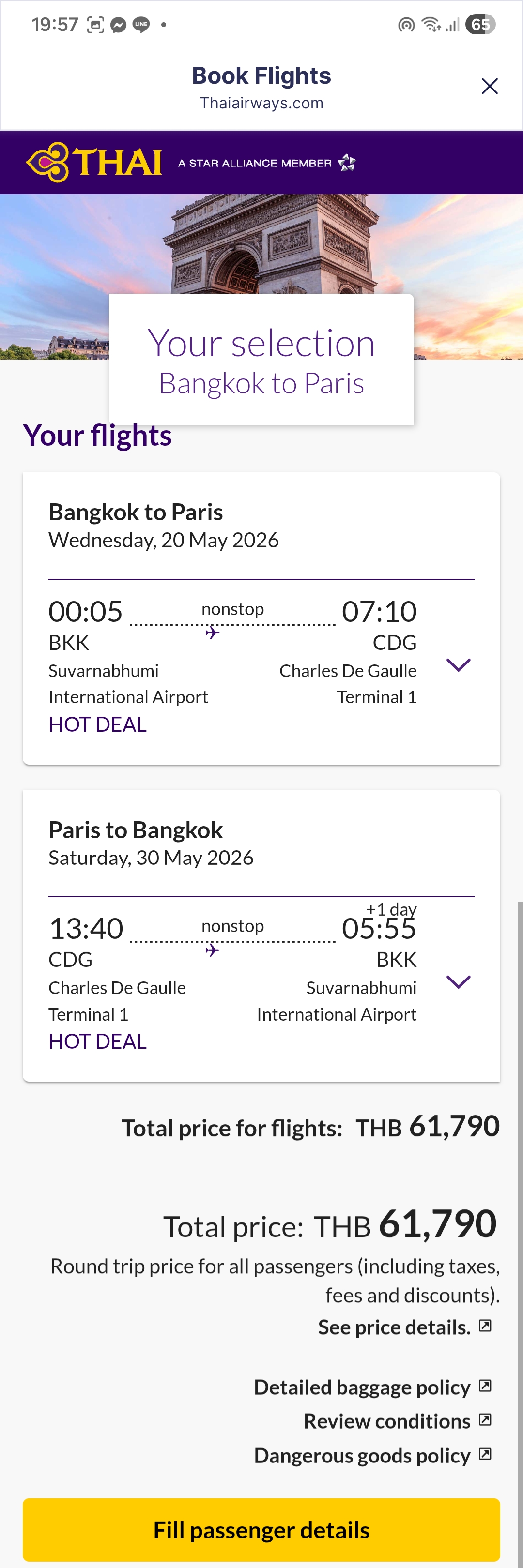 เส้นทาง: กรุงเทพฯ (BKK) – ปารีส (CDG) ไป-กลับ
