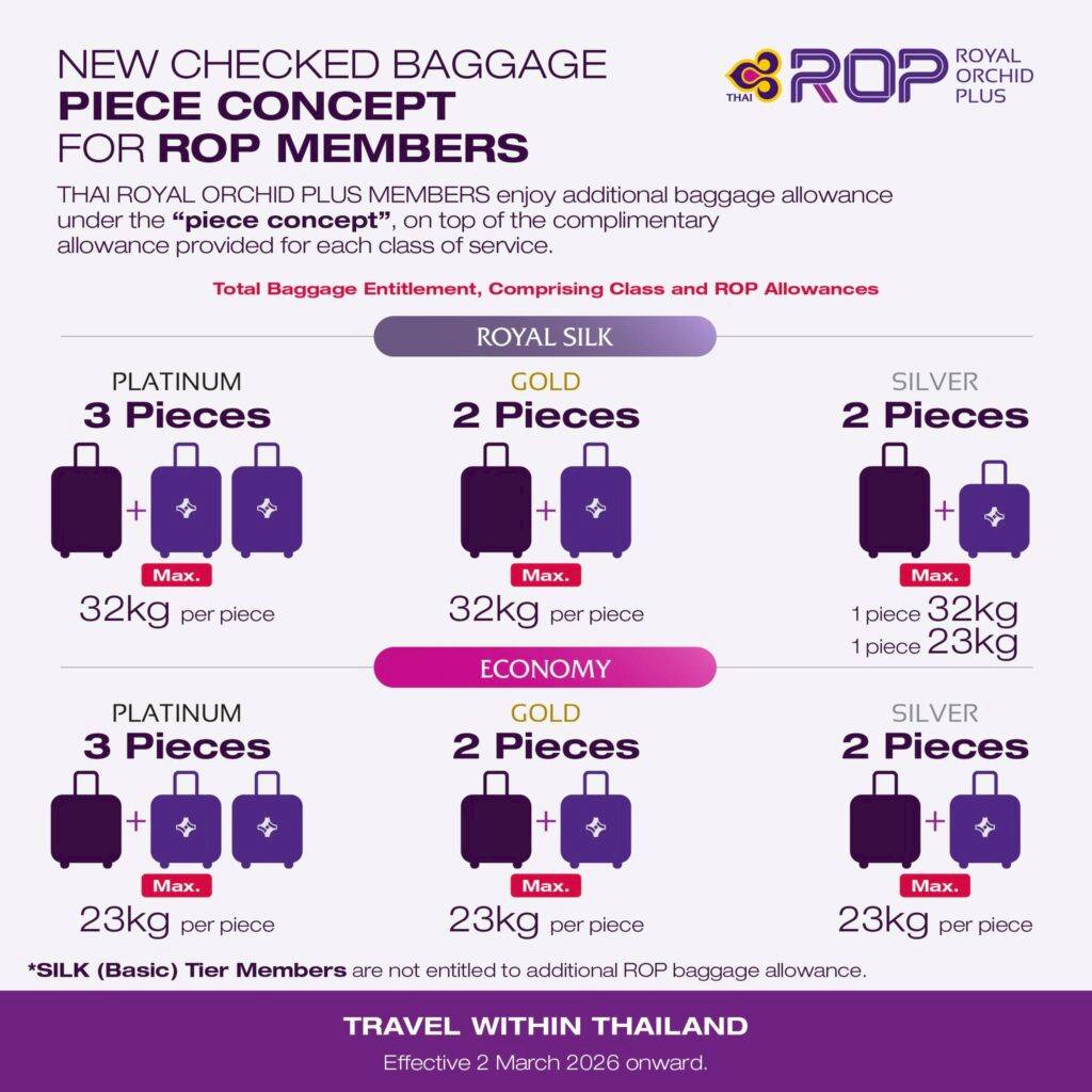แต่สำหรับเที่ยวบินที่เดินทางตั้งแต่วันที่ 2 มีนาคม 2569 เป็นต้นไป สิทธิประโยชน์ได้เปลี่ยนเป็น "กระเป๋าโหลดเพิ่มอีก 1 ใบ น้ำหนัก 23 กก."