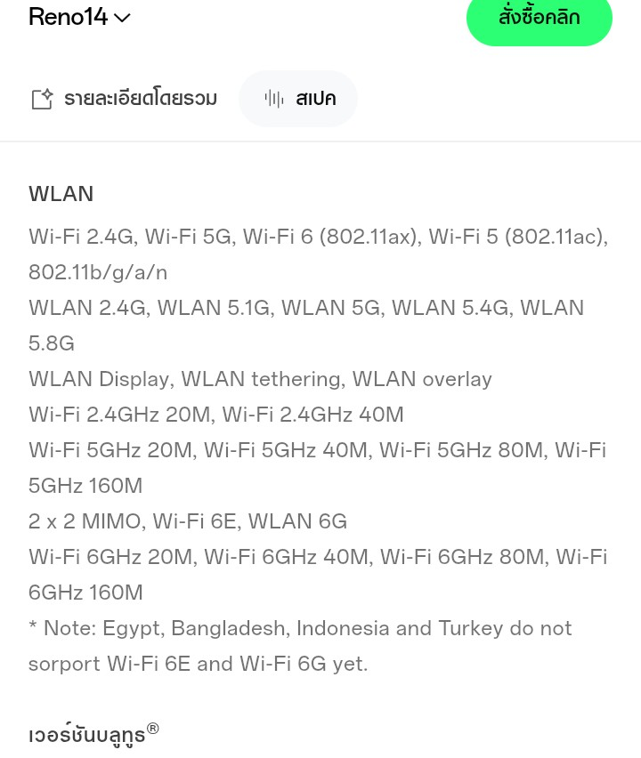 OPPO Reno14 5G ใช้ wifi 6E ได้มั้ยครั