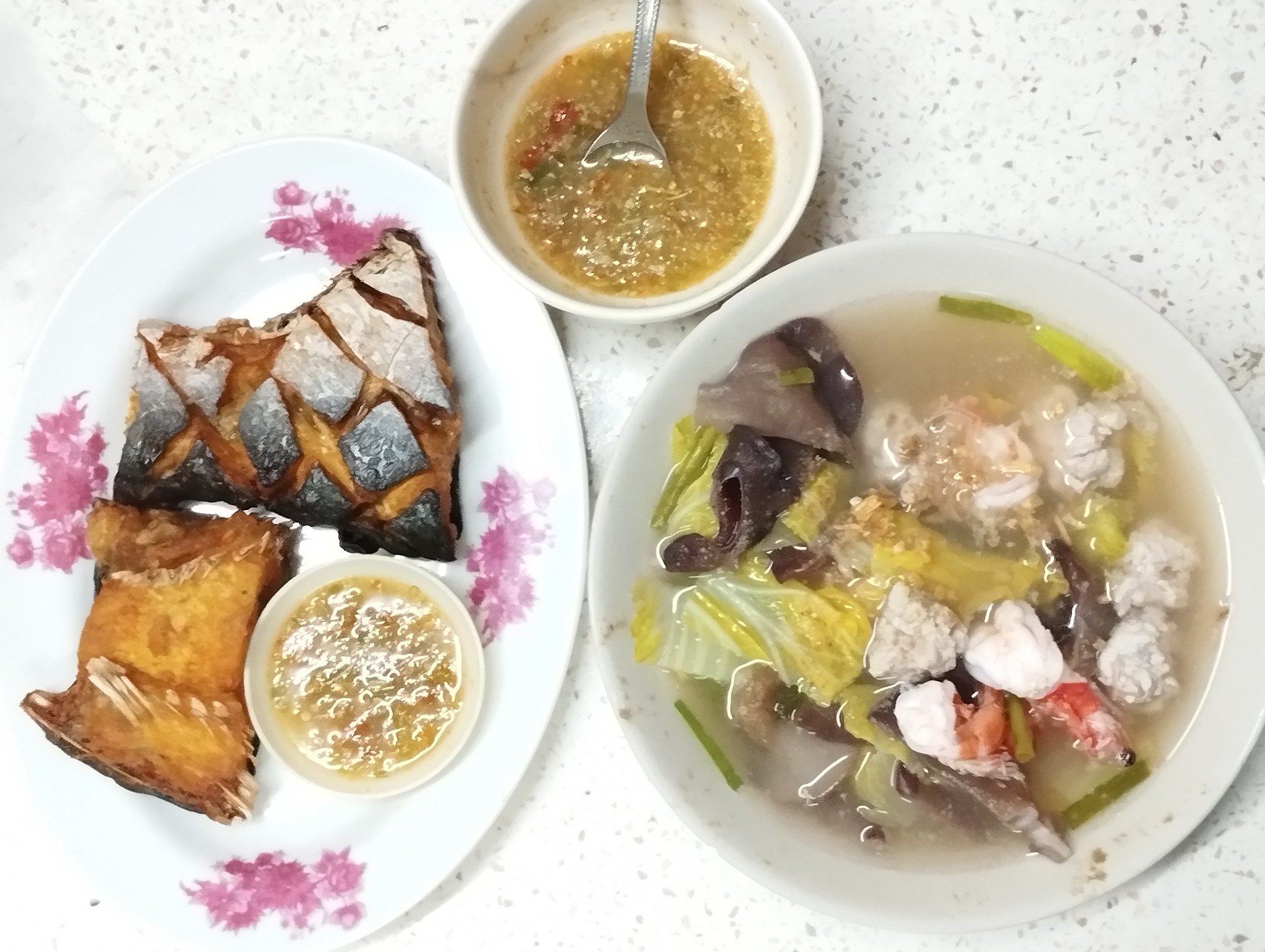 น้า Low Batt :: ปลาสวายทอด & ต้มจืดผักกาดขาว เห็ดหูหนู หมูสับ กุ้ง
