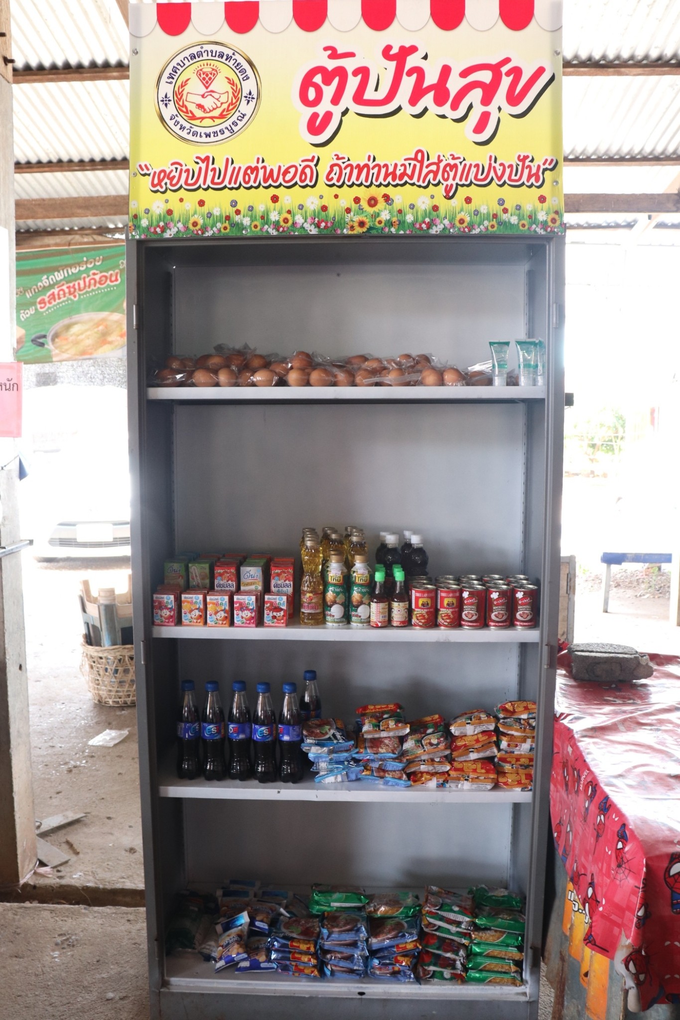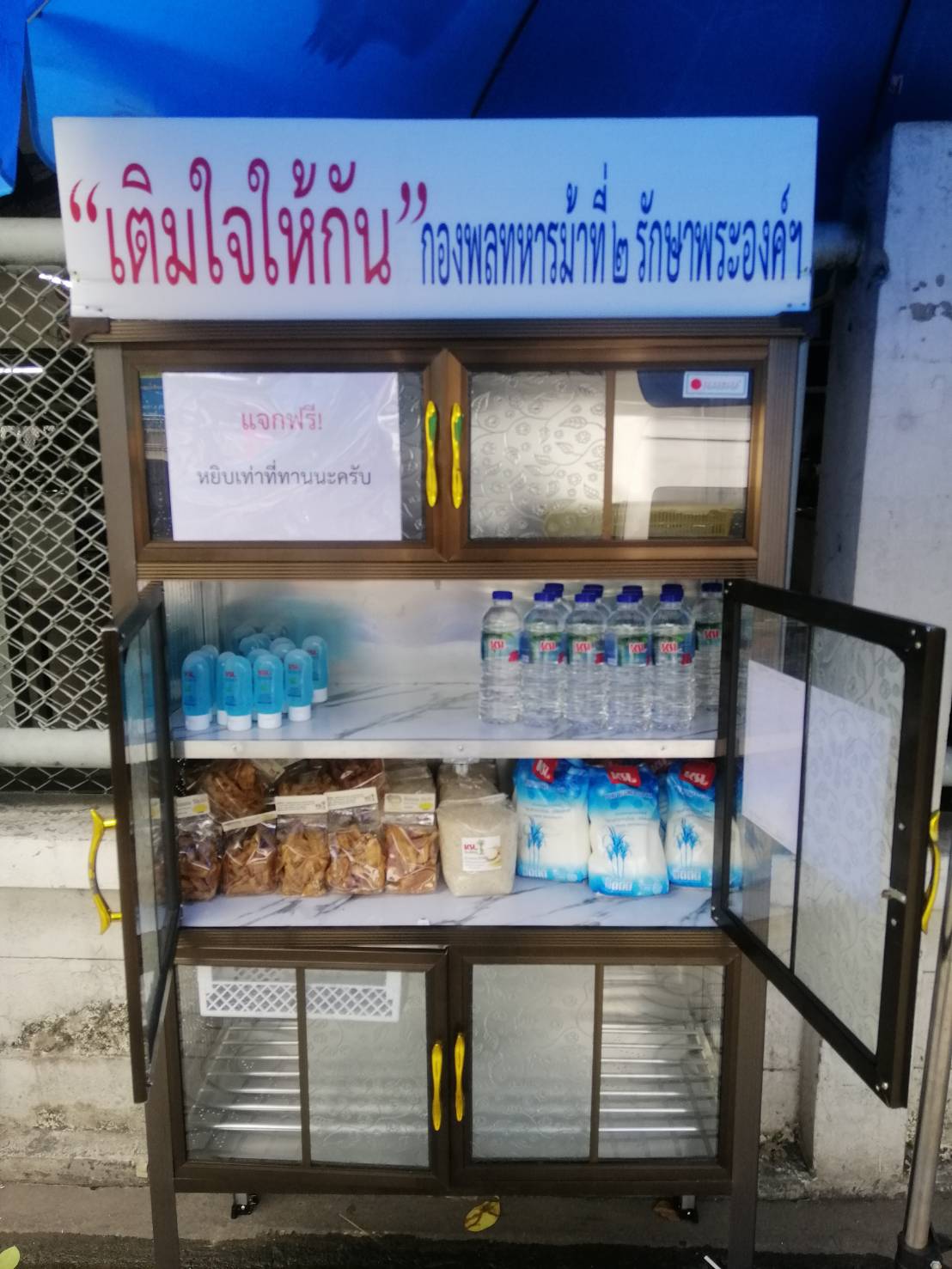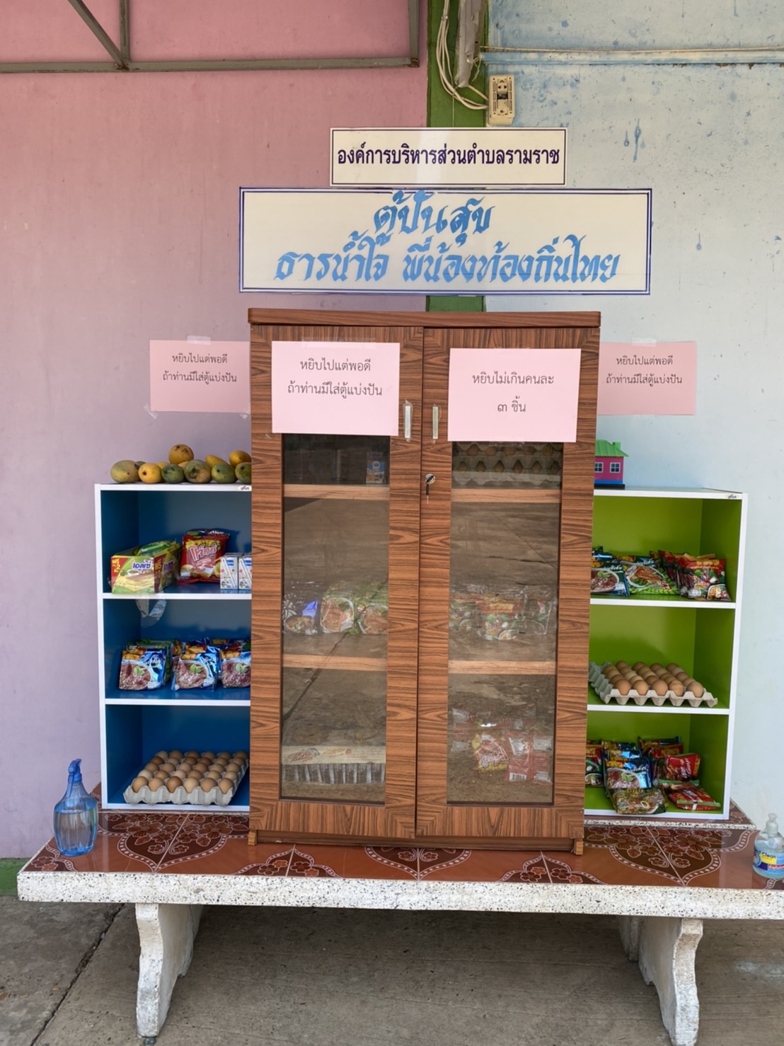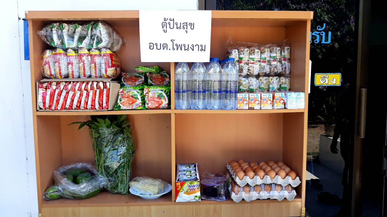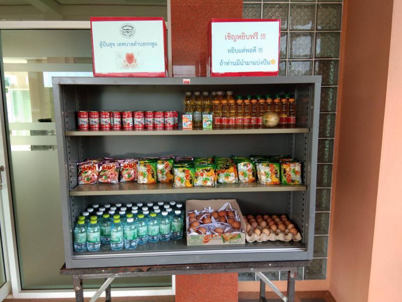 ตู้ปันสุข "หยิบไปแต่พอดี ถ้าท่านมีให้ใส่ตู้แบ่งปัน"