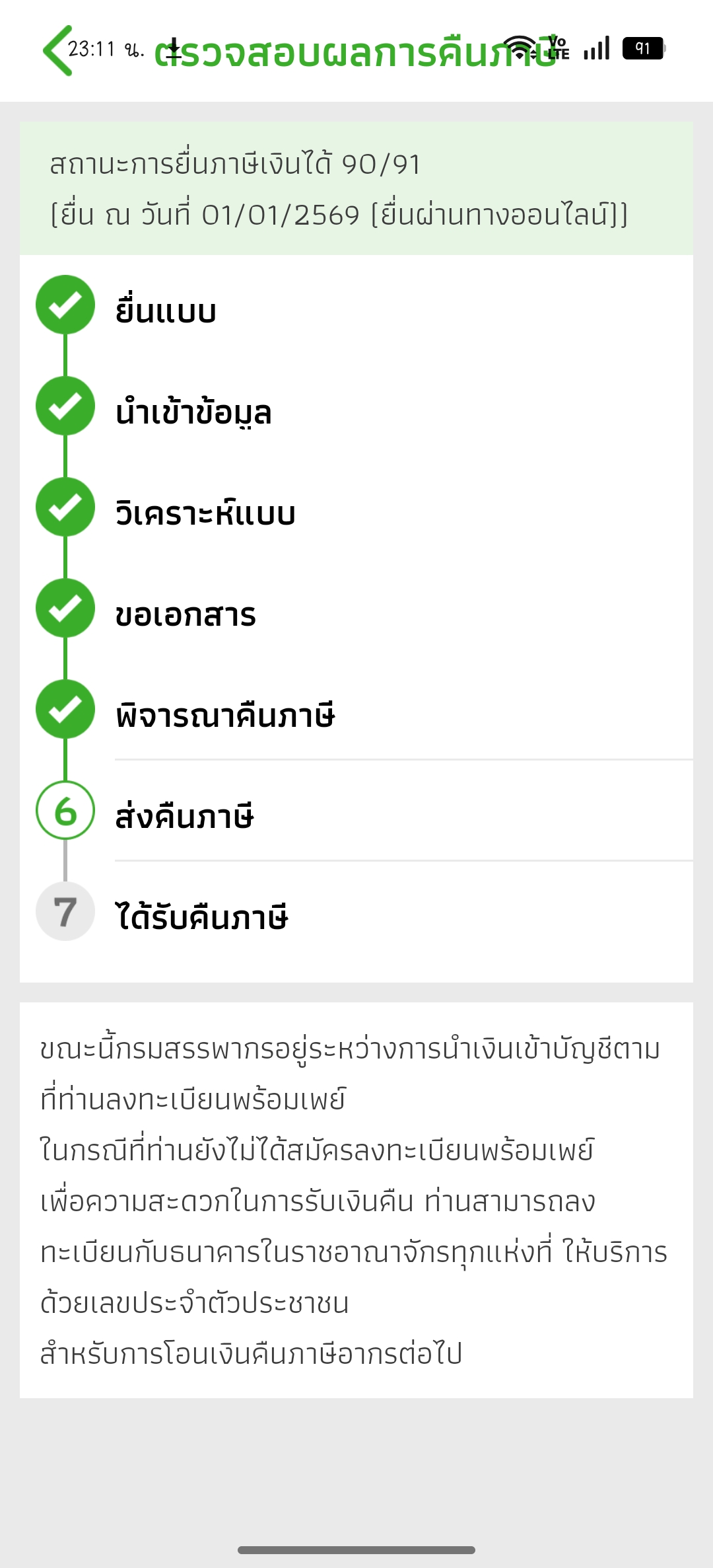 เห็นมีหลายๆท่านบอกว่าได้คืนภาษีแล้วผมเลยไปดูมั่งครับปรากกว่าขั้นตอนมันขยับพรวดเลยครับ
