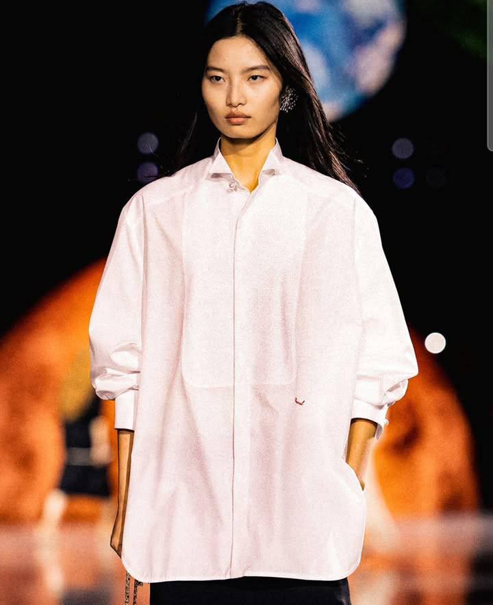 นอกจากสีแดง (จากคลังผลงานเก่า เดรสแดงฝีมือออกแบบโดยมาดมัวแซลล์ชาเนลเองจากยุค 1920s) ที่ผุดพรายท่ามกลางสีขาว-ดำ-เบจอันคุ้นตาของเมซงแล้ว ลุคเสื้อเชิ้ตเรียบกริบ งานคอลแลบกับ Charvet ซึ่งชาเนลเป็นลูกค้าประจำของร้านเสื้อเชิ้ตแห่งแรกของโลกที่ก่อตั้งในปารีสเมื่อปี 1838 คือสิ่งแปลกตาจนดูแปลกปลอมยิ่งในจักรวาล CHANEL หากเสื้อเชิ้ต Chanel x Charvet ที่ไม่คุ้นตานี้กลับได้ไปอยู่บนร่าง Nicole Kidman ที่รีเทิร์นมาเป็นฟรอนต์โรว์ในช่วงเวลาที่แสงแฟลชส่องชีวิตของเธอมากที่สุดอีกครั้งหนึ่ง จากข่าวแยกทางกับสามี Keith Urban