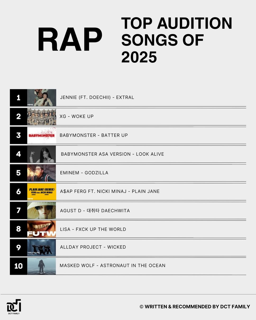 เพลง LOOK ALIKE (ASA VERSION) และเพลง BATTER UP อยู่ใน Top 10 เพลงแรปยอดนิยมที่ถูกนำมาใช้ AUDITION มากที่สุดในโลกในปี 2025