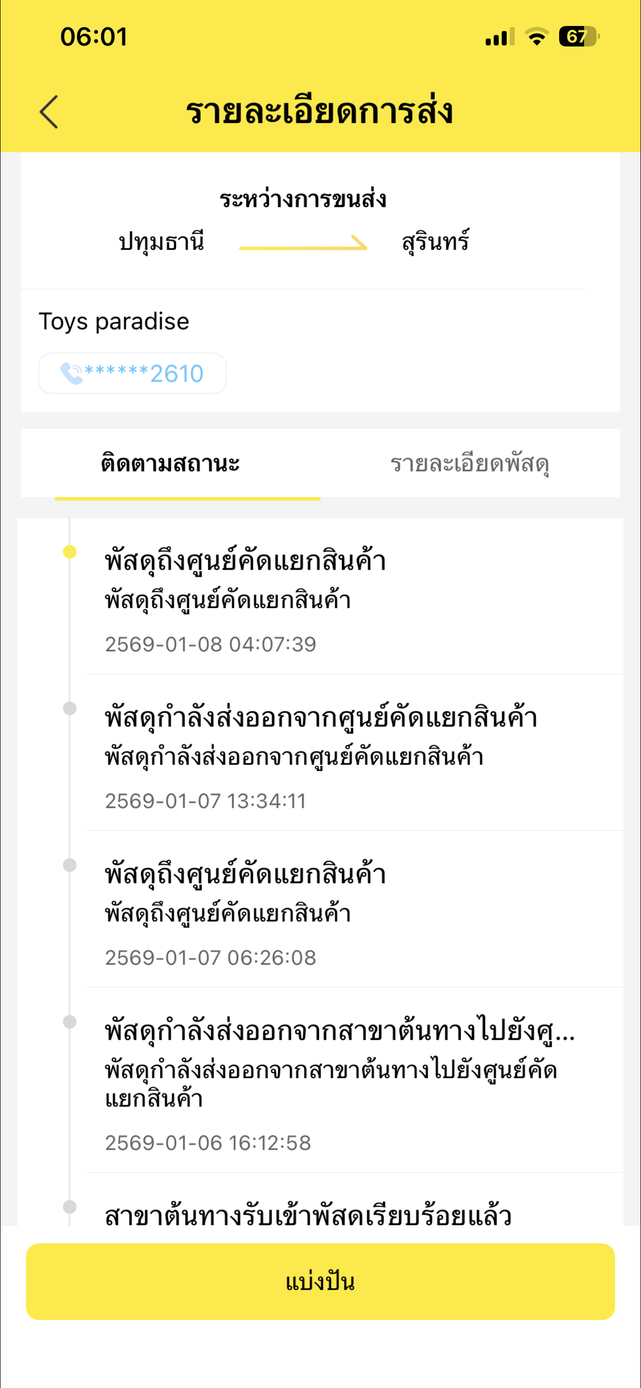 พัสดุไม่อัพเดท เบอร์โทรก็ติดต่อไม่ได้