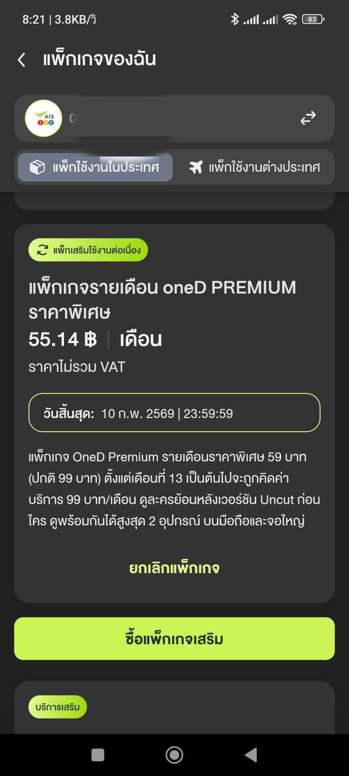 สมัคร oneD แพ็คเกจรายเดือน ของ AIS ไป ไม่มี SMS ยืนยันส่งมาให้