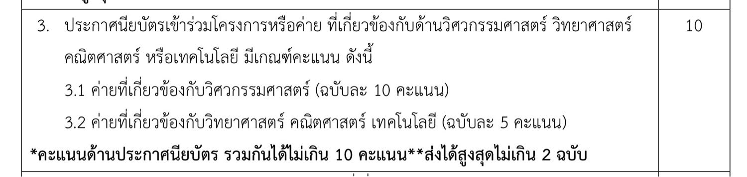 พอดีจะยื่นวิศวอุตสาหการค่ะ อยากถามเรื่องเกณฑ์ตรงค่ายที่เคยเข้าร่วม ถ้ามีผลงานค่ายที่เกี่ยวกับวิศวกรรมศาสตร์ แสดงว่าใส่ได้แค่ค่ายเดียวในพอร์ตเลยใช่มั้ยคะ ค่ายอื่นๆที่เคยไปมาไม่สามารถใส่เพิ่มเติมในหน้าหลังๆได้เลย