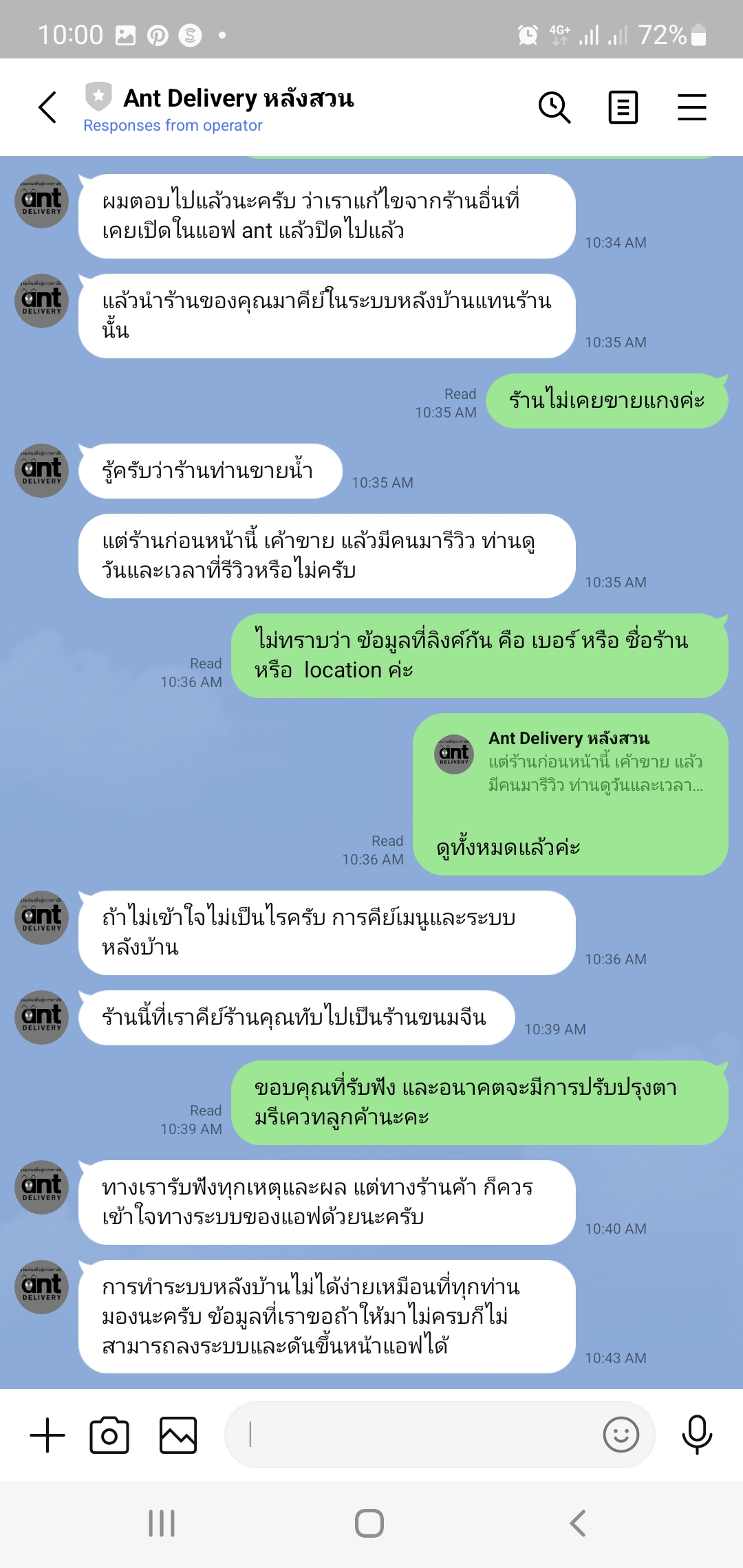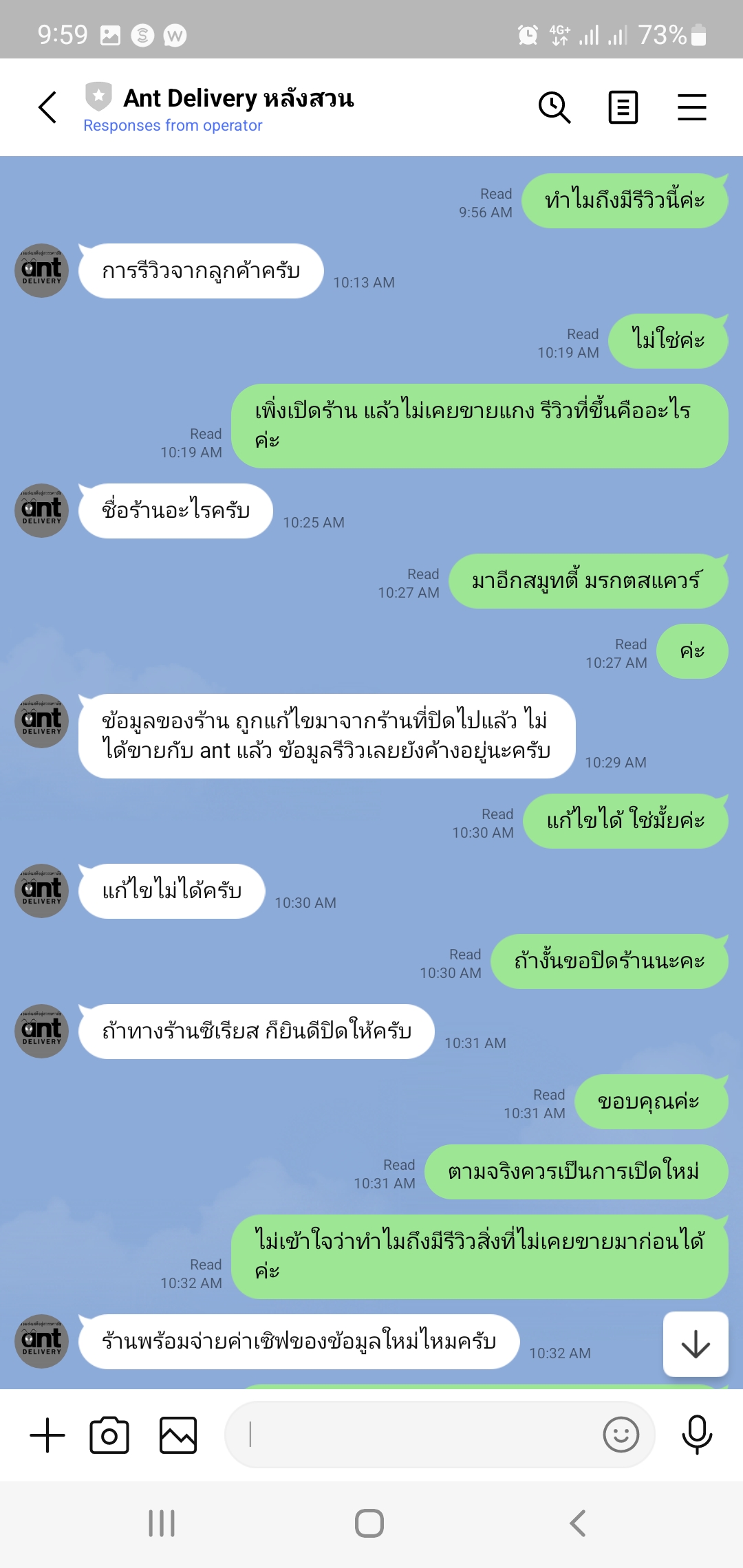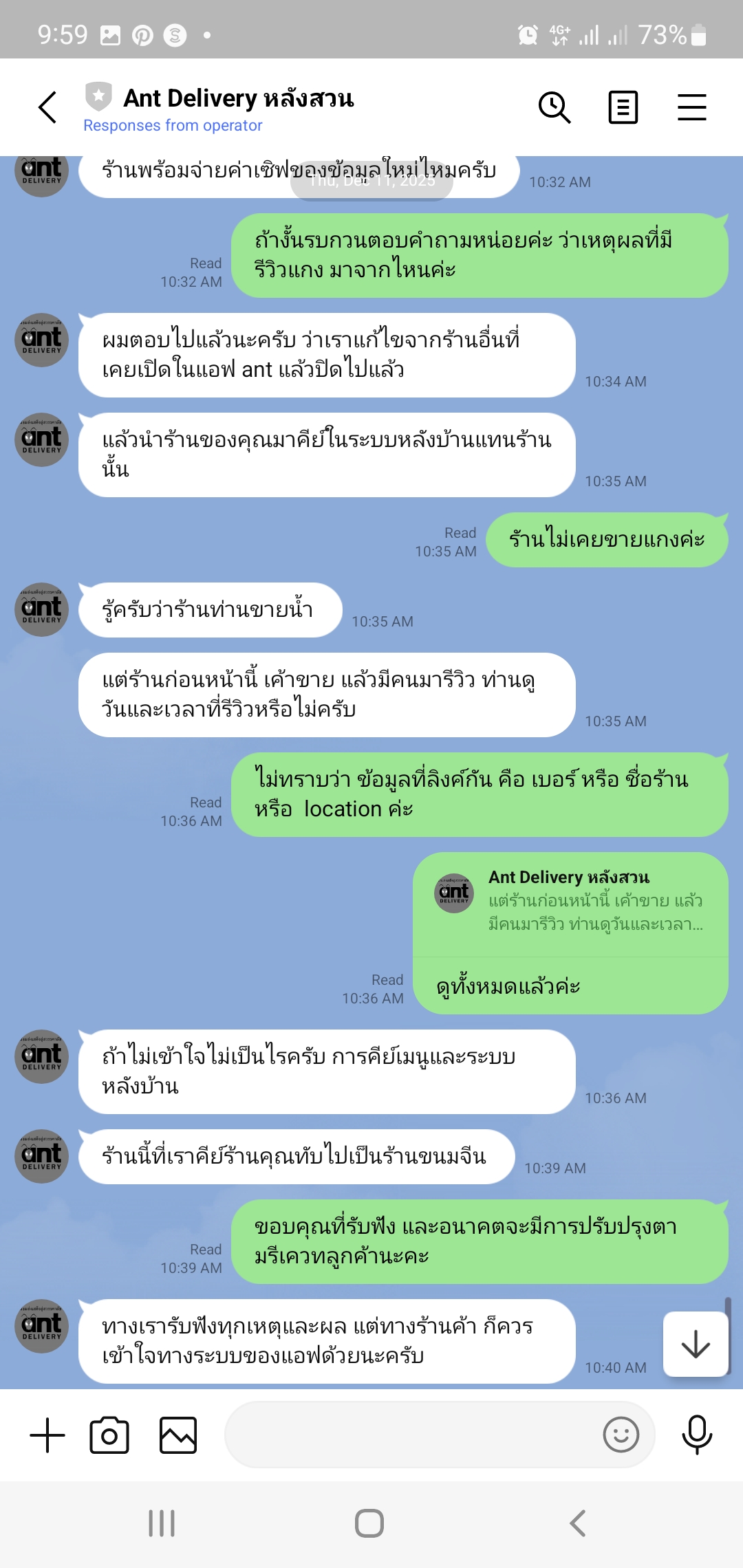 ร้านเราขายเครื่องดื่ม เพิ่งเปิดใหม่ แต่ในระบบ Ant Delivery มี รีวิวเกี่ยวกับ “แกง” ปรากฏอยู่