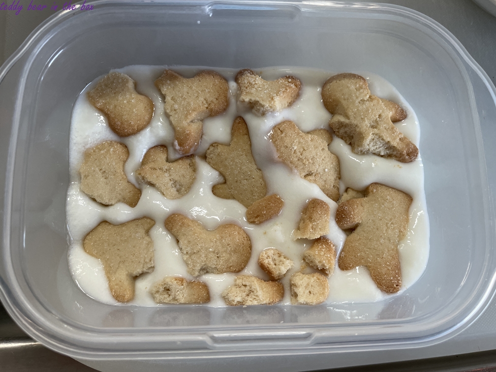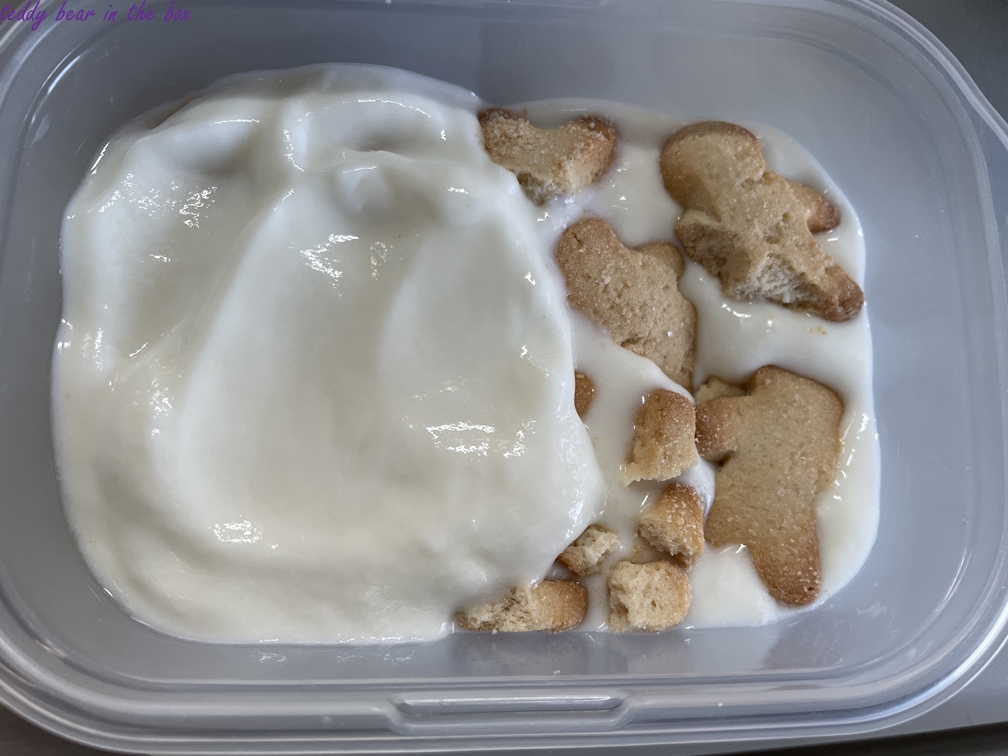 เค้าเอาบิสกิตใส่ลงไปในถ้วยโยเกิร์ต แล้วแช่ตู้เย็นไว้ 8 ชม