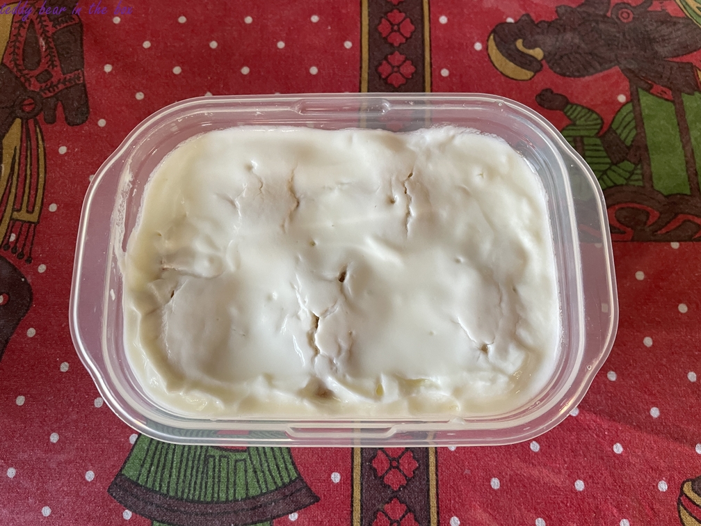 วางขนมปังในโยเกิร์ต แล้วเพิ่มทีละชั้น