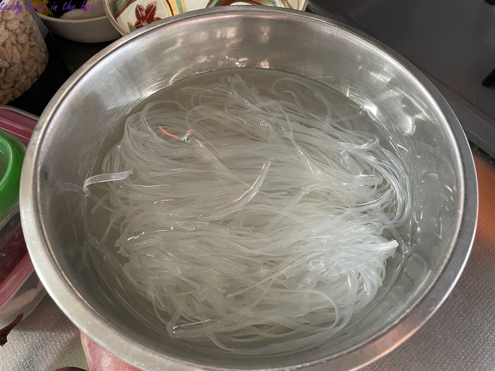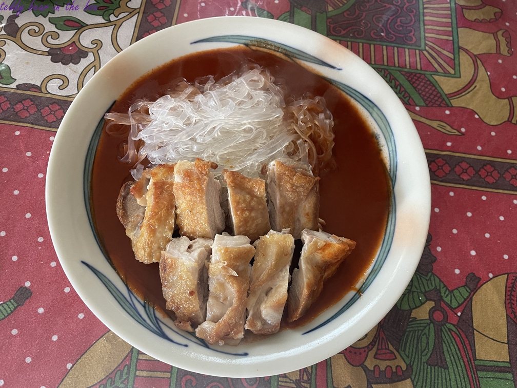 ไก่ทอดไม่ใช้น้ำมันกับแกงแดง กับวุ้นเส้นลวก