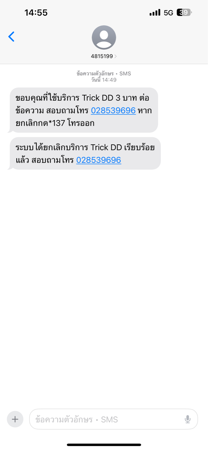 ชอบมีข้อความ สมัคร sms แบบเสียเงิน โดยไม่เคยสมัครด้วยตยเองเลยสักครั้ง