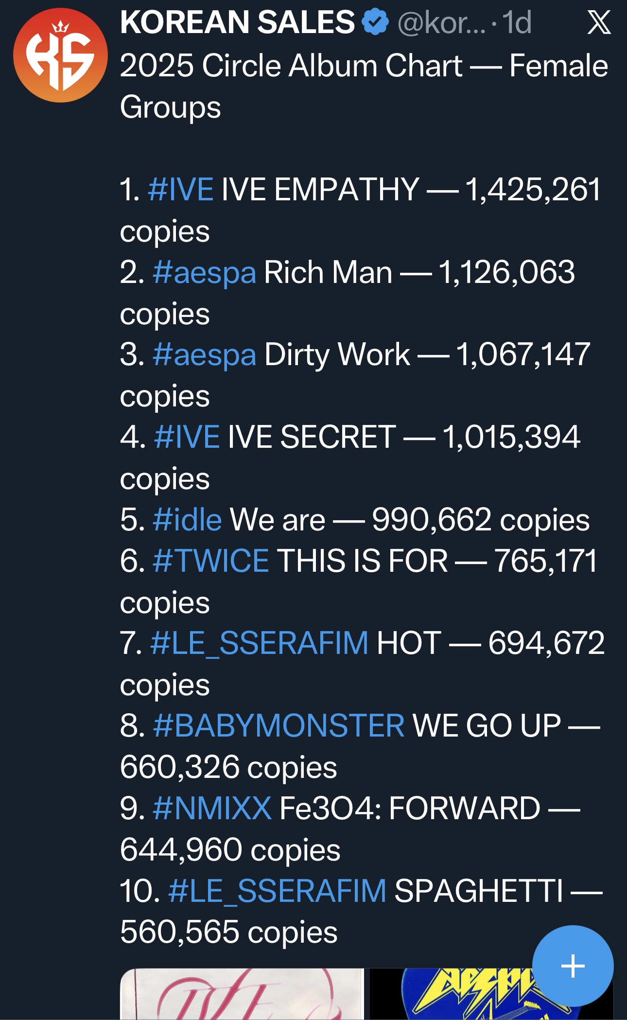 Babymonster ติดtop10 ในปี2025 ที่มียอดขายอัลบั้มของเคป็อปเกิร์ลกรุ๊ปเยอะสุด10อันดับ