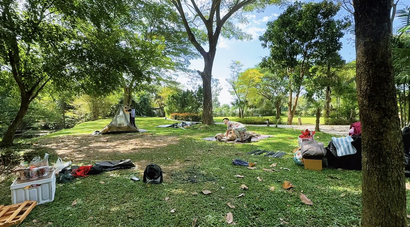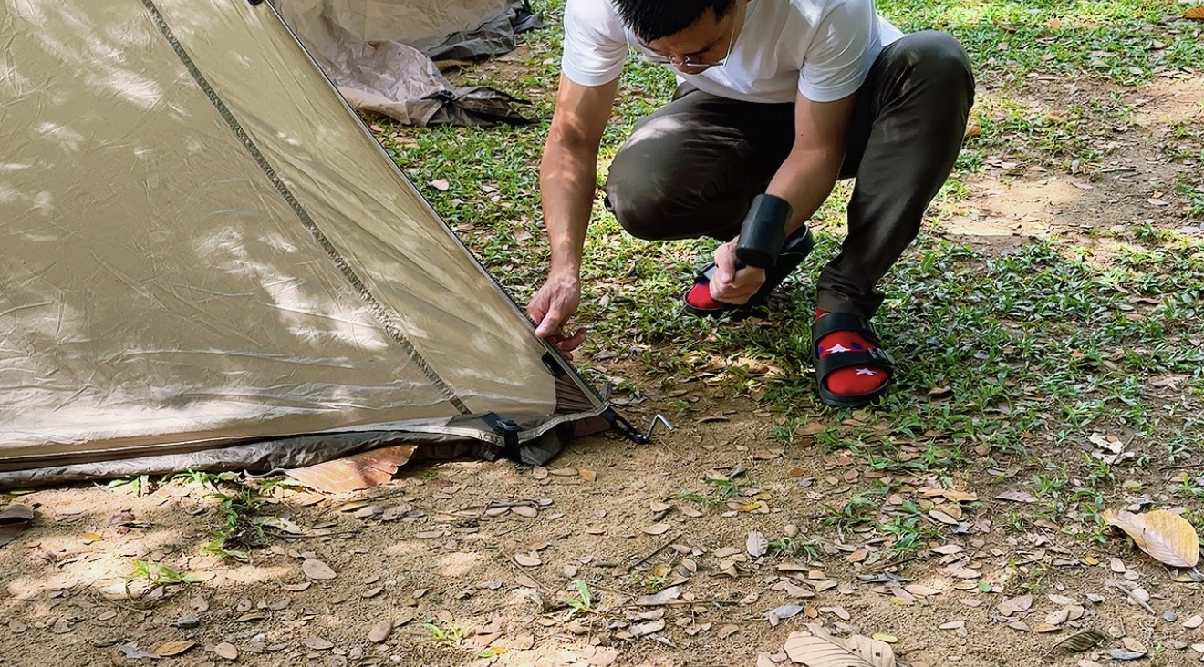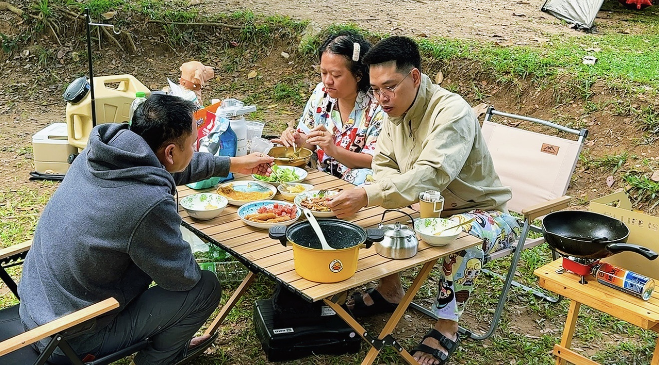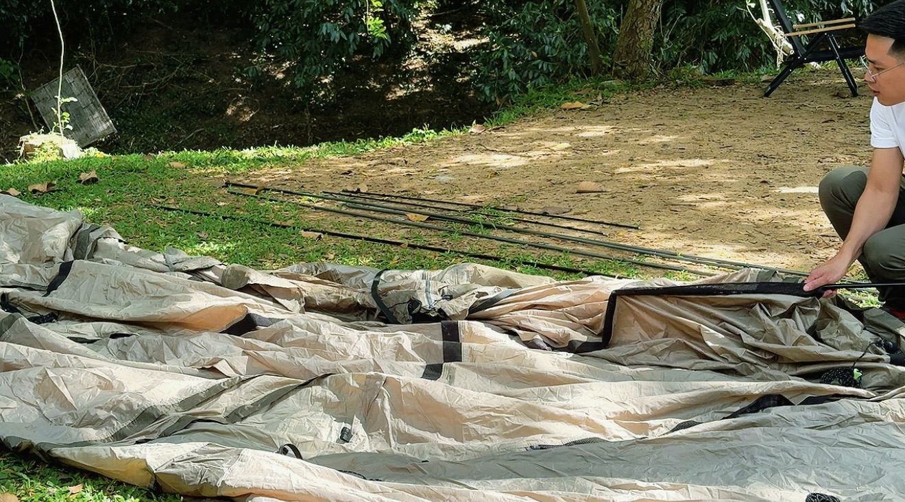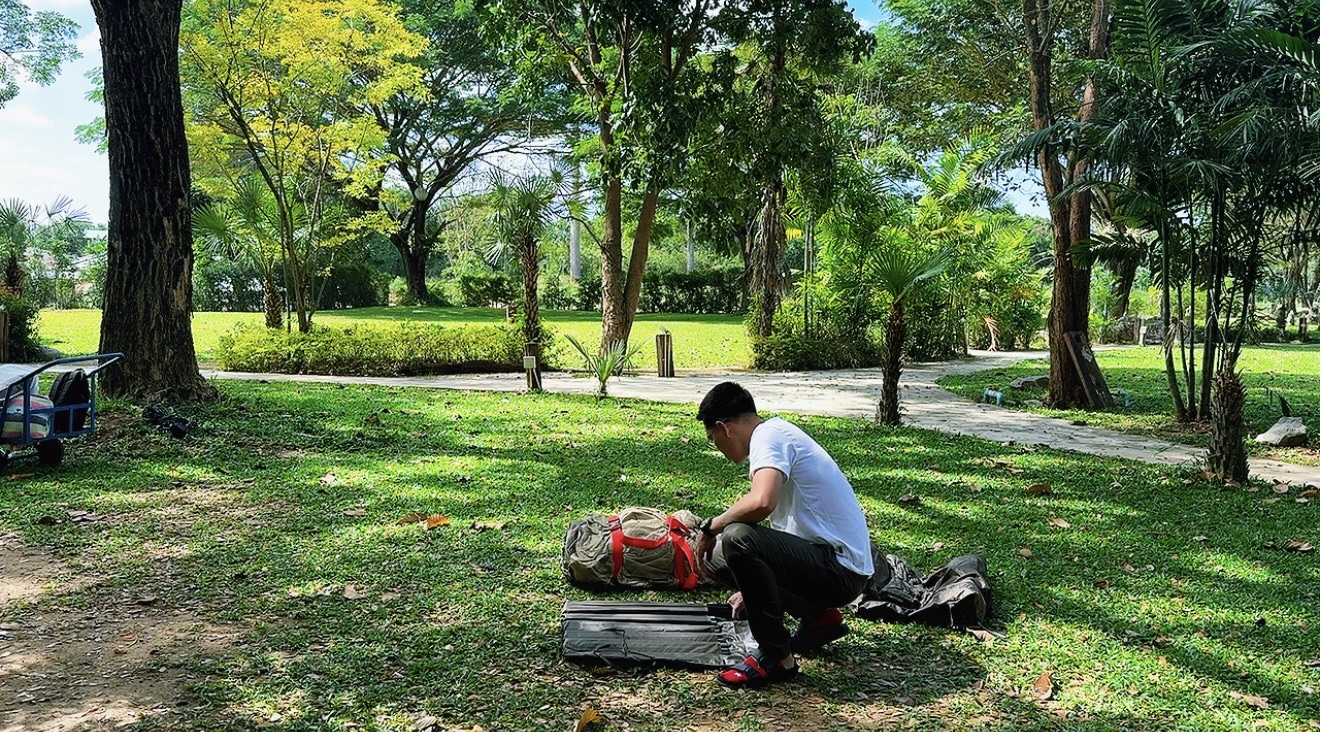 ครับ ที่นี่ต้นไม้ใหญ่เยอะมาก ทำให้ลานมีความร่มเย็นตลอดทั้งวัน ผมเลือกกางโซนติดริมลำธาร ซึ่งเป็นไฮไลท์เลยครับ นอนฟังเสียงน้ำไหลเพลินๆ แถมช่วงที่ผมไปอากาศเริ่มหนาวแล้ว กลางคืนอุณหภูมิลดลงจนต้องซุกตัวในถุงนอน ฟินสุดๆ เลยครับ 🥶