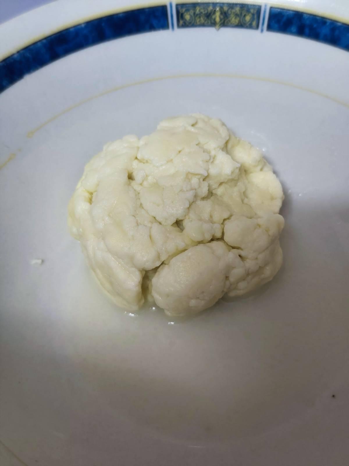 จากรูป เราพึ่งเอาออกจากไมโครเวฟ เนื้อสัมผัสของชีสเวลาเคี้ยวเหมือนฟองน้ำ รสชาติมันๆ นมๆ