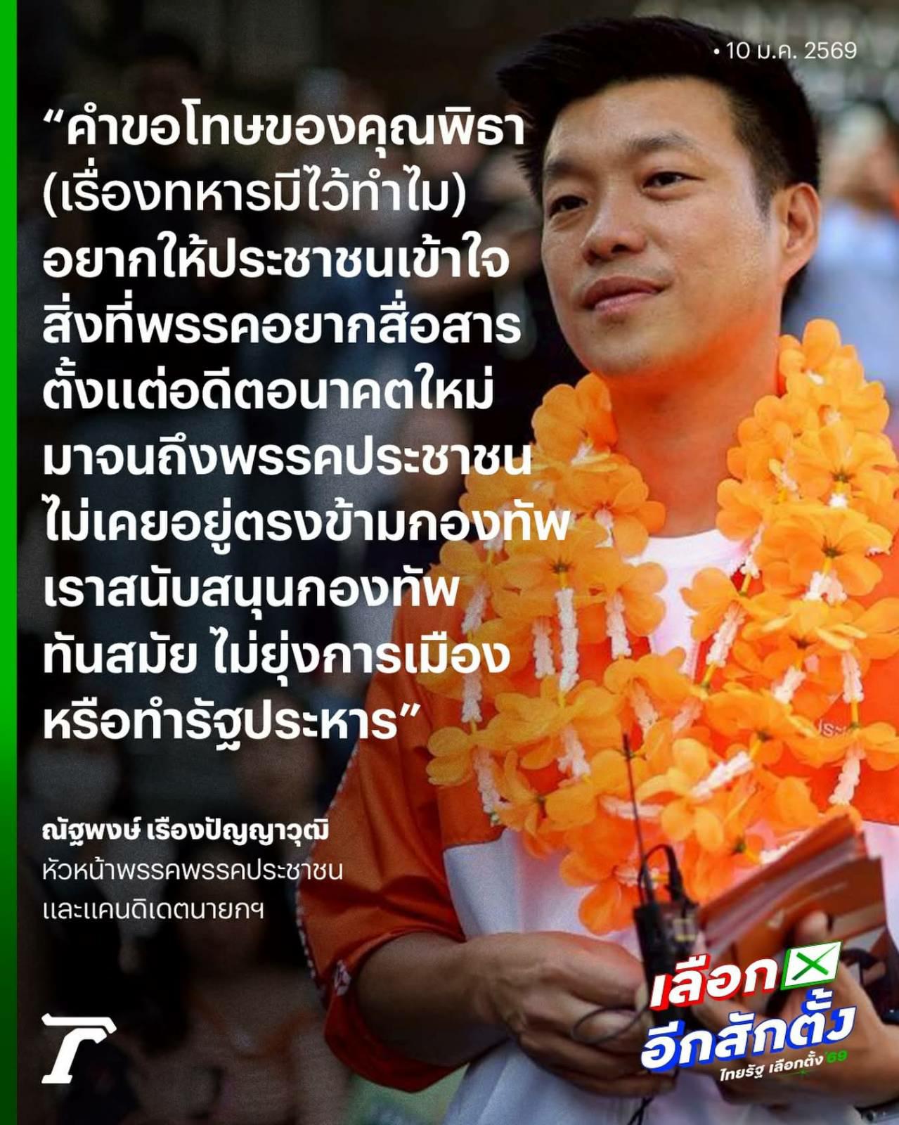 เท้ง” ชี้แจงแล้ว หลัง “พิธา” กล่าวคำขอโทษเรื่องวลี #ทหารมีไว้ทำไม เผยต้องการให้ประชาชนเข้าใจสิ่งที่พรรคอยากสื่อสาร