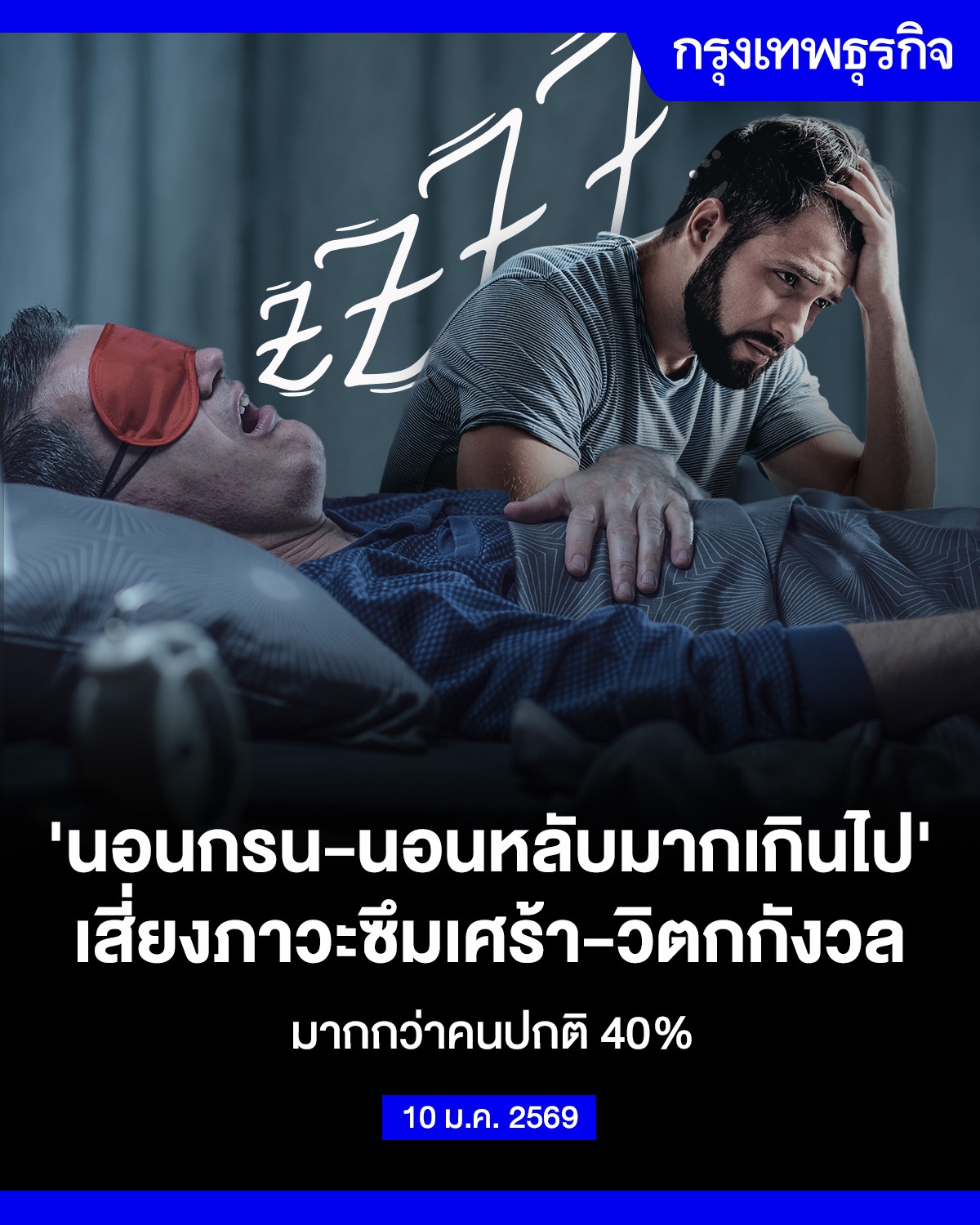 นอนกรน-นอนหลับมากเกินไป' เสี่ยงภาวะซึมเศร้า-วิตกกังวล มากกว่าคนปกติ 40%
